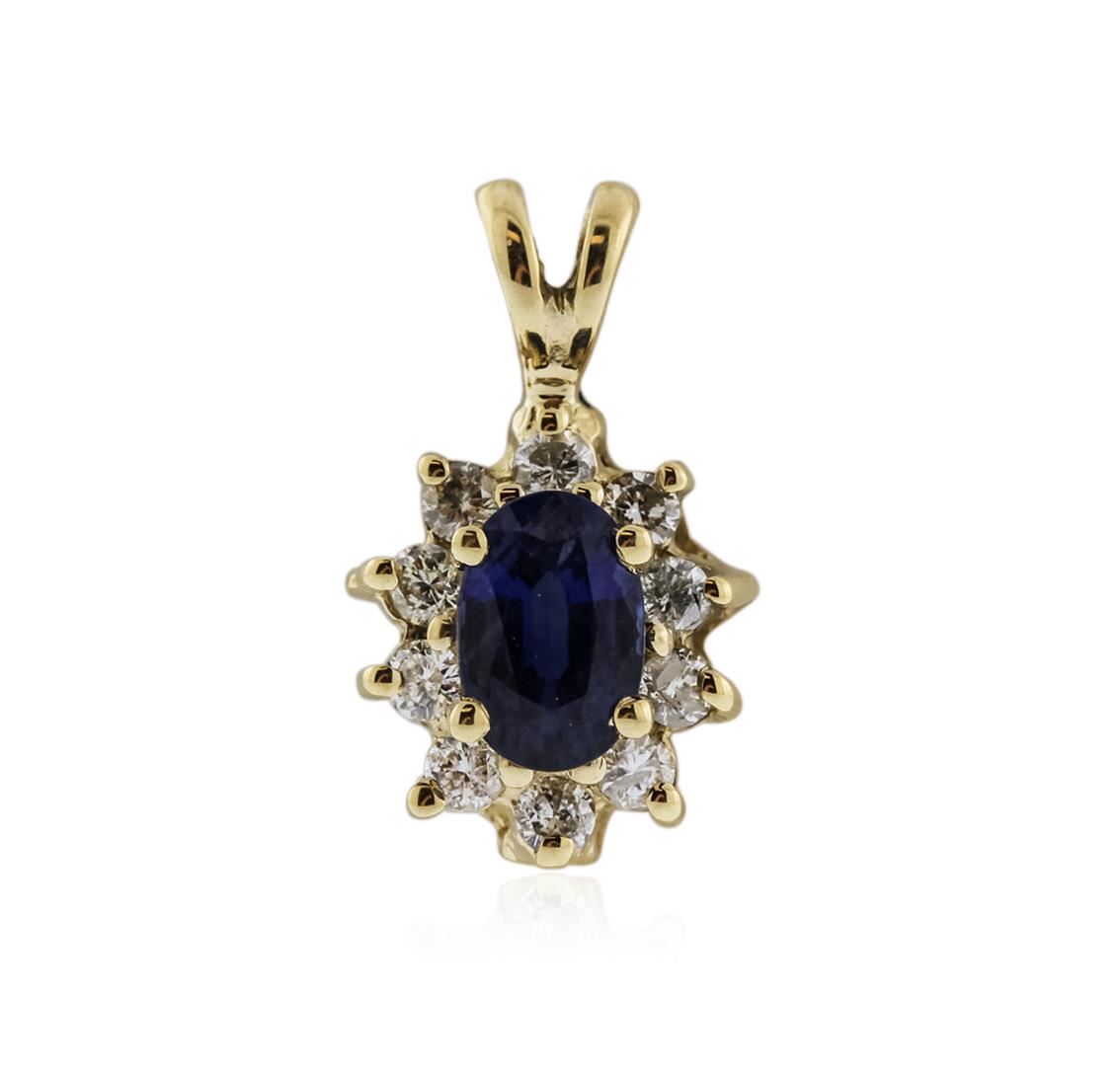 One pendant featuring: 14KT yellow gold weighing 1.21 grams containing one blue sapphire with a total weight of 0.70ct and diamonds with a total weight of 0.23ct.