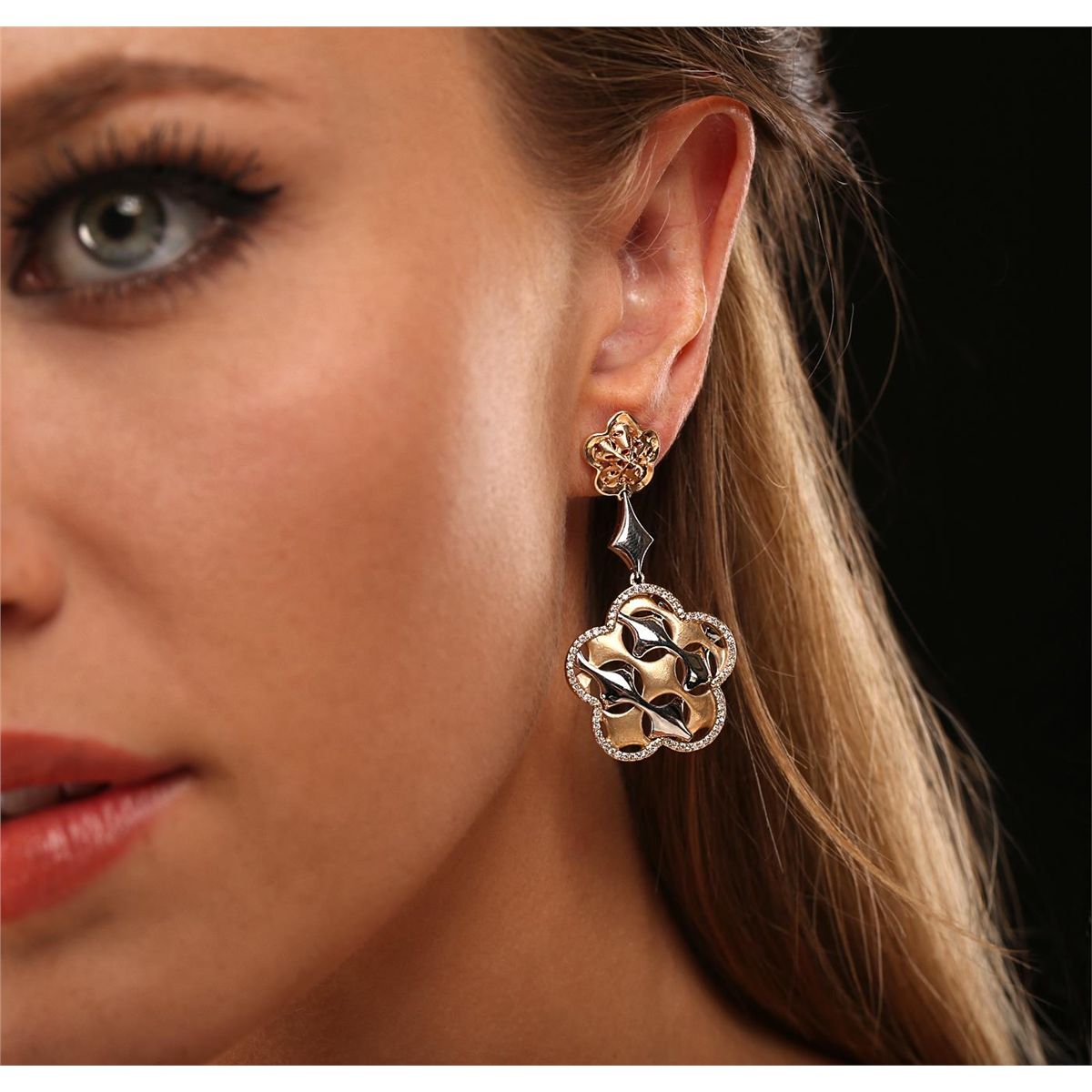 One pair electronically tested 14KT yellow gold Ladies die struck & assembled dangle earrings with friction posts with a bright polish finish. Identified with markings of "14K". Condition is excellent. Containing: One Hundred Ninety-Six bead set round brilliant cut diamonds, measuring 1.00 - 1.00 x 0.60mm (depth est.) approximate total weight of 196 Stones = 0.75ct. Clarity of I-1 to I-2, Color of H - I. Total Weight of Diamonds 0.75ct. Total Weight of Earrings 15.10gm. GGL Appraised at $5,446.00.