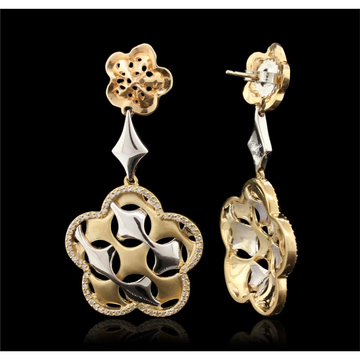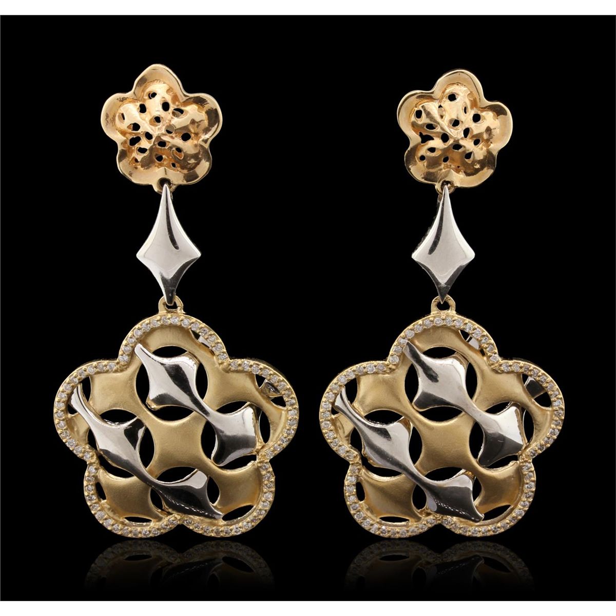 One pair electronically tested 14KT yellow gold Ladies die struck & assembled dangle earrings with friction posts with a bright polish finish. Identified with markings of "14K". Condition is excellent. Containing: One Hundred Ninety-Six bead set round brilliant cut diamonds, measuring 1.00 - 1.00 x 0.60mm (depth est.) approximate total weight of 196 Stones = 0.75ct. Clarity of I-1 to I-2, Color of H - I. Total Weight of Diamonds 0.75ct. Total Weight of Earrings 15.10gm. GGL Appraised at $5,446.00.