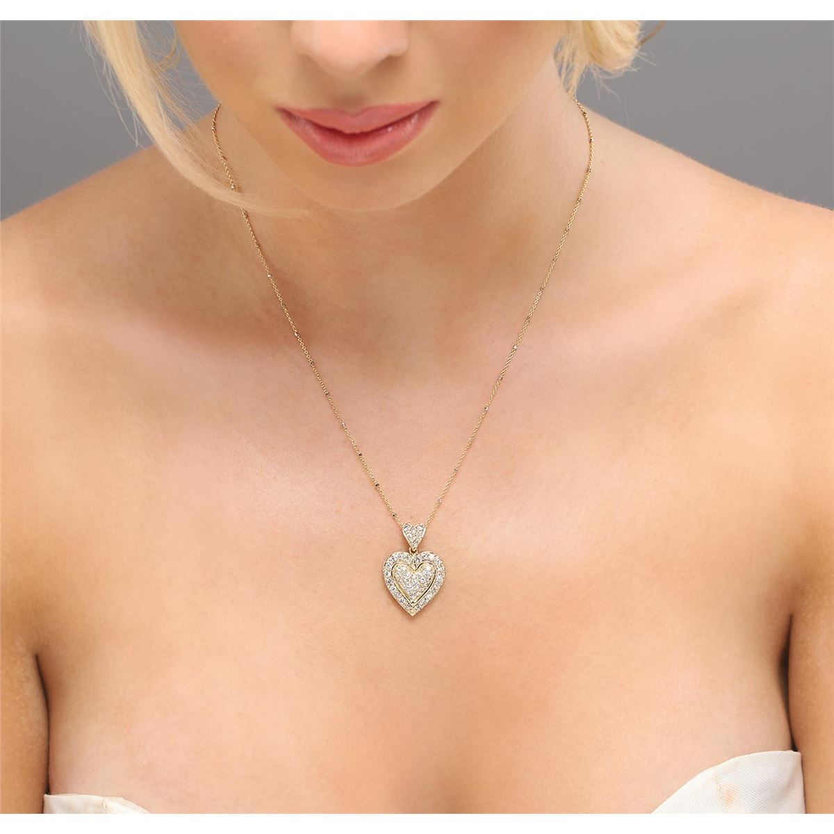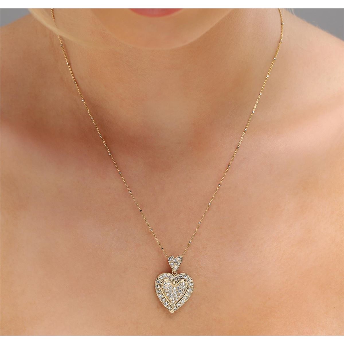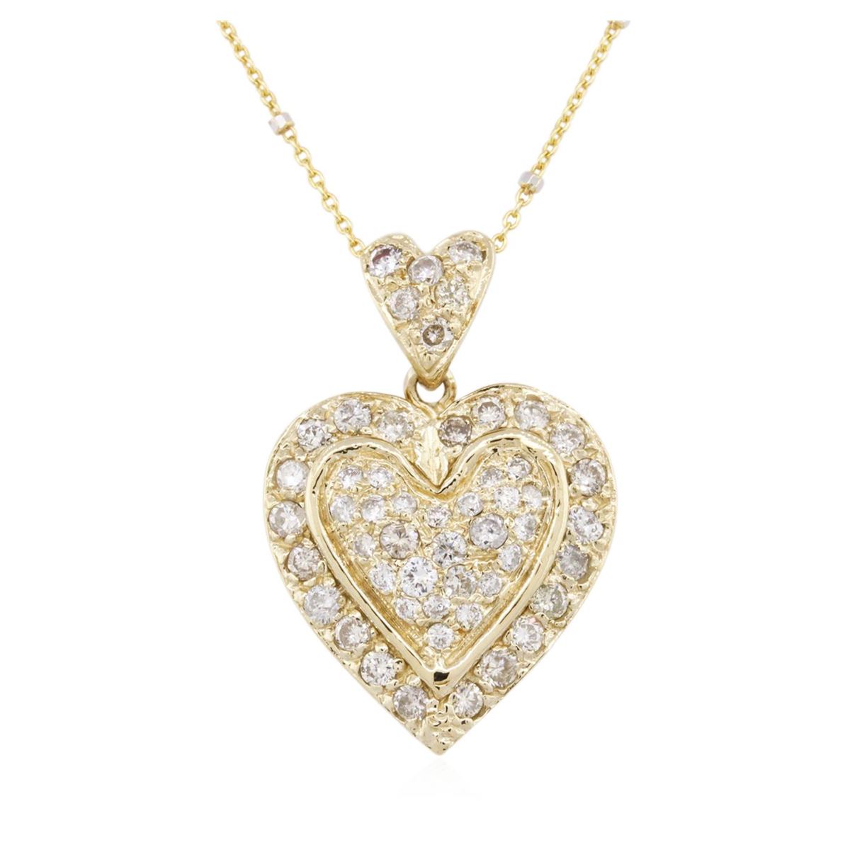 One electronically tested 14KT yellow gold ladies combination cast & assembled diamond pendant & chain 18.3" long, cable link with a spring ring clasp with a bright polish finish. Condition is new. Containing: Fifty-Two prong set round brilliant cut diamonds, measuring 2.00 - 1.30 x 0.99mm (depth est.) approximate total weight of 52 Stones = 0.85ct. Clarity: SI-1 to I-1. Color: J - K, Cut is Good. All diamonds are graded in the mounting, unless otherwise stated. Total Weight of Diamonds 0.85ct. Total Weight of Pendant & Chain 9.50 grams. GGL Appraised at $4,775.00.