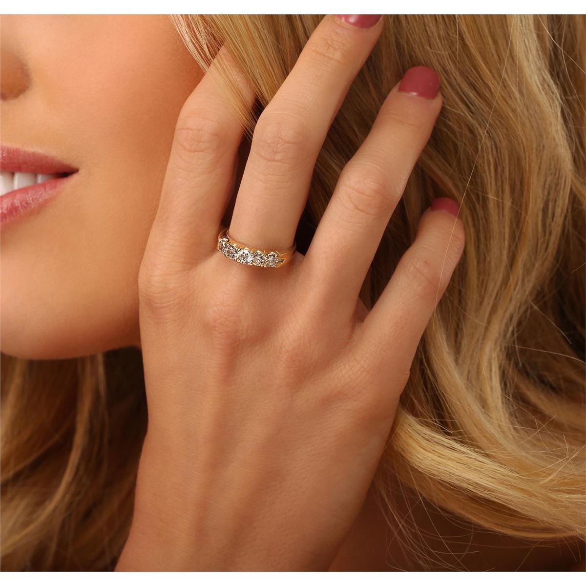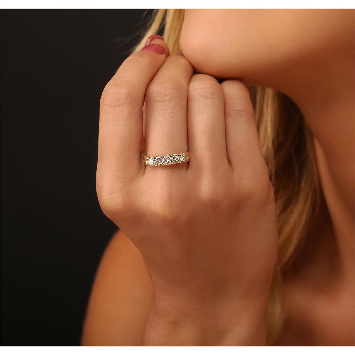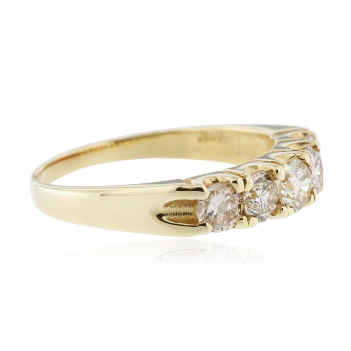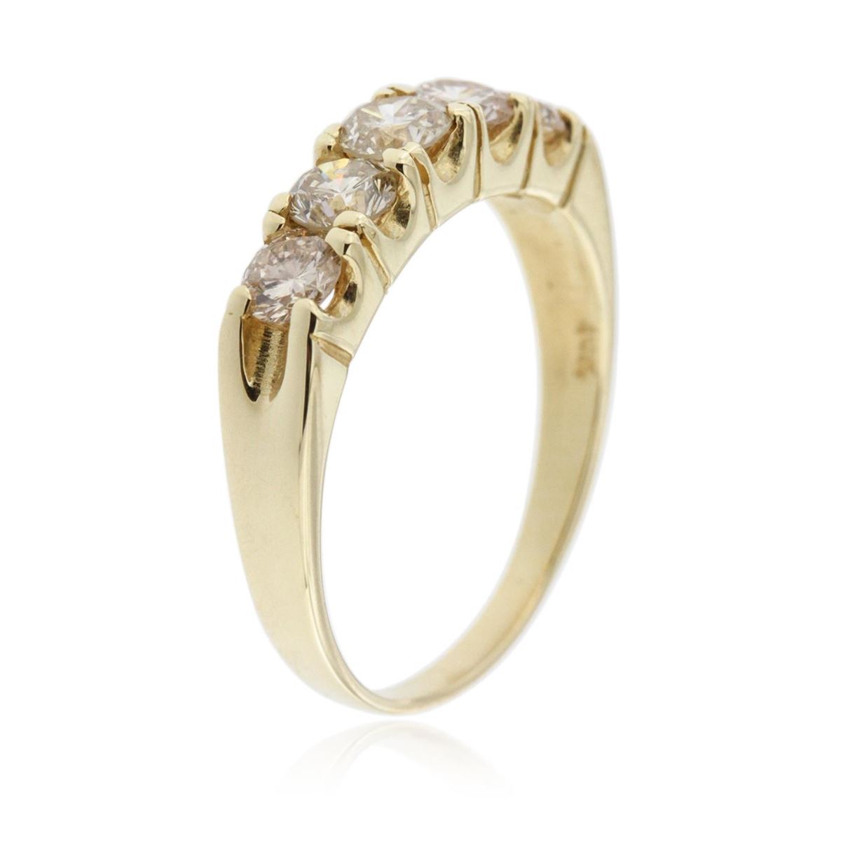 One electronically tested 14KT yellow gold Ladies combination cast & assembled wedding band with a bright polish finish. Identified with markings of "14K". Condition is excellent. Containing: Five prong set round brilliant cut diamonds, measuring 3.90 - 3.90 x 2.34mm (depth est.) approximate total weight of 5 Stones = 0.85ct. Clarity of SI-1 to SI-2, Color of J - K, Cut is Very Good. Total Weight of Diamonds 0.85ct. Total Weight of Band 3.30gm. GGL Appraised at $3,630.00.