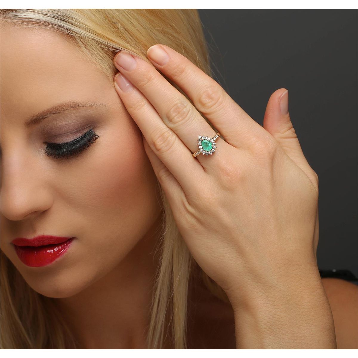 One electronically tested 14KT yellow gold ladies combination cast & assembled emerald and diamond ring with a flat shank with a bright polish finish. Identified with markings of "14K". Condition is new. Containing: One prong set pear modified brilliant cut natural emerald, measuring 6.76 x 5.36 x 4.55mm, approximate weight of 0.90ct., clarity is heavily included, type III, medium light, very slightly grayish, very slightly bluish green color, (GIA vslbG 4/3), cut is good. Fifteen prong set round brilliant cut diamonds, measuring 1.70 - 1.10 x 0.84mm (depth est.) approximate total weight of 15 Stones = 0.15ct. Clarity: I-1 to I-2. Color: J - K, Cut is Good. Colored gemstones are presumed to have been subjected to commonly used enhancement processes. All diamonds and colored gemstones are graded in the mounting, unless otherwise stated total weight of Colored Stones 0.90ct. Total Weight of Diamonds 0.15ct. Total Weight of Ring 3.00 grams. GGL Appraised at $3,960.00.