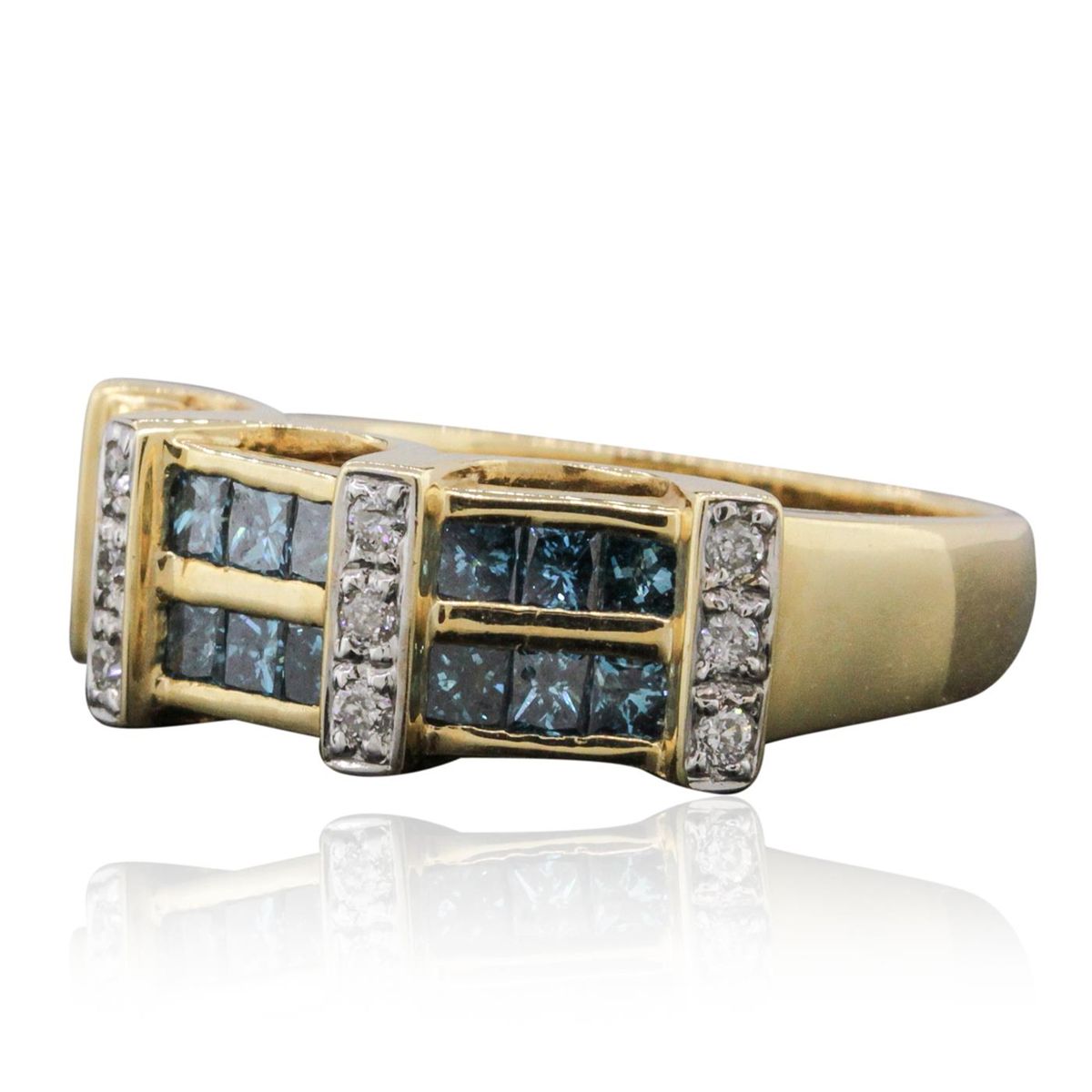 One ring featuring: 14KT yellow gold weighing 6.14 grams containing 18 blue diamonds with a total weight of 0.83ctw and 12 round cut diamonds with a total weight of 0.15ctw.