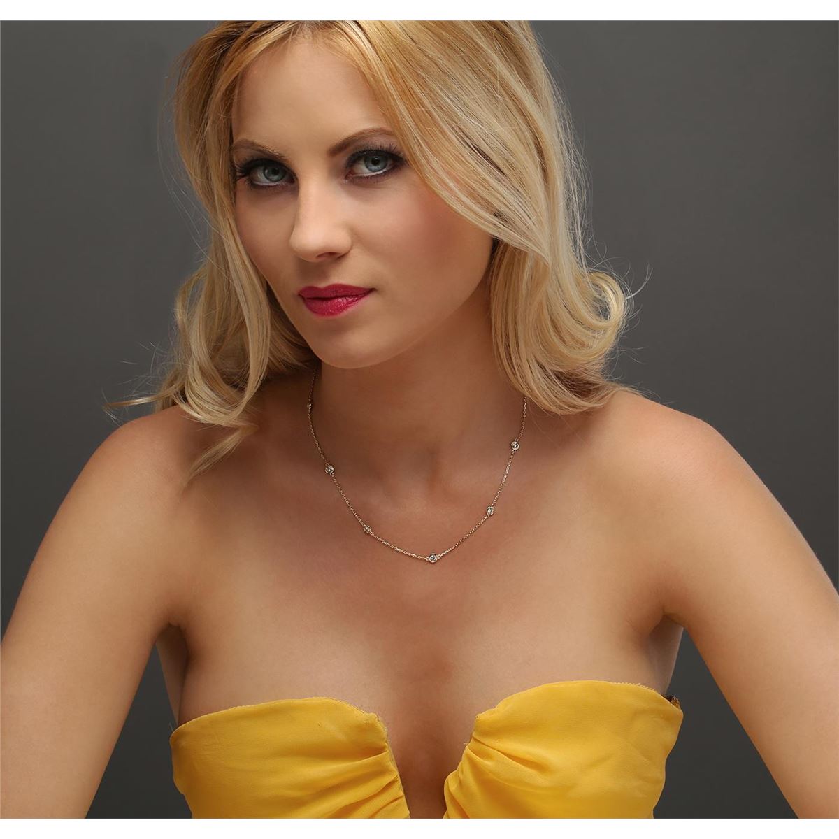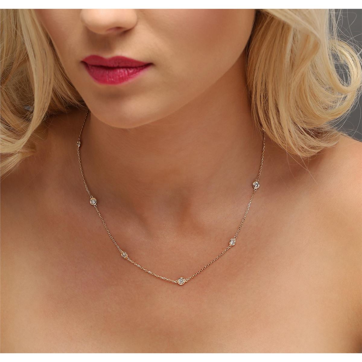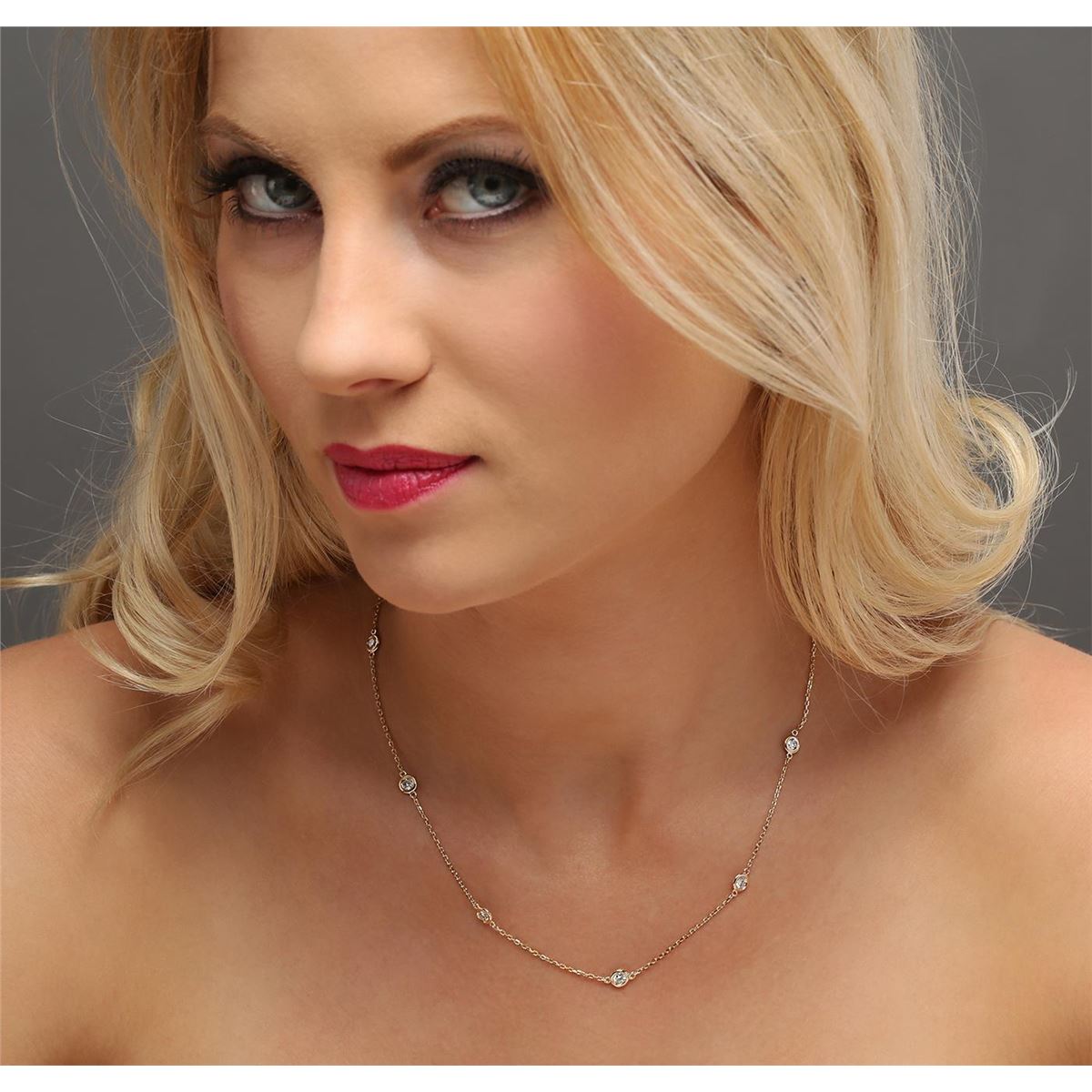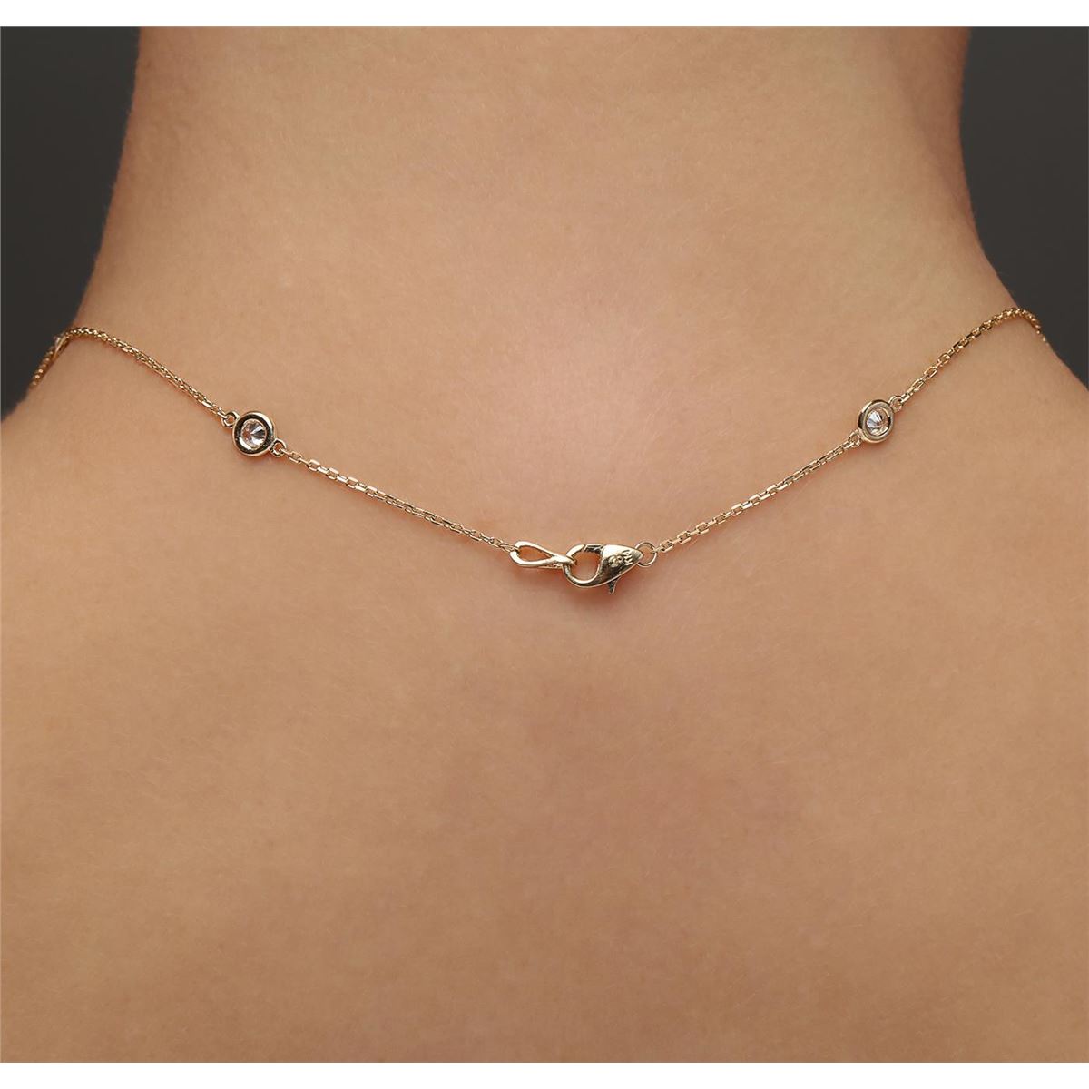 One electronically tested 14KT yellow gold ladies cast diamond necklace with a lobster claw clasp with a bright polish finish. Measurements: 18" in length Identified with markings of "K14". Condition is new. Containing: Ten bezel set round brilliant cut diamonds, measuring 3.00 - 3.00 x 1.80mm (depth est.) approximate total weight of 10 Stones = 0.99ct. Clarity: SI-1 to I-1. Color: K, Cut is Good. All diamonds are graded in the mounting, unless otherwise stated. Total Weight of Diamonds 0.99ct. Total Weight of Necklace 4.20 grams. GGL Appraised at $3,035.00.