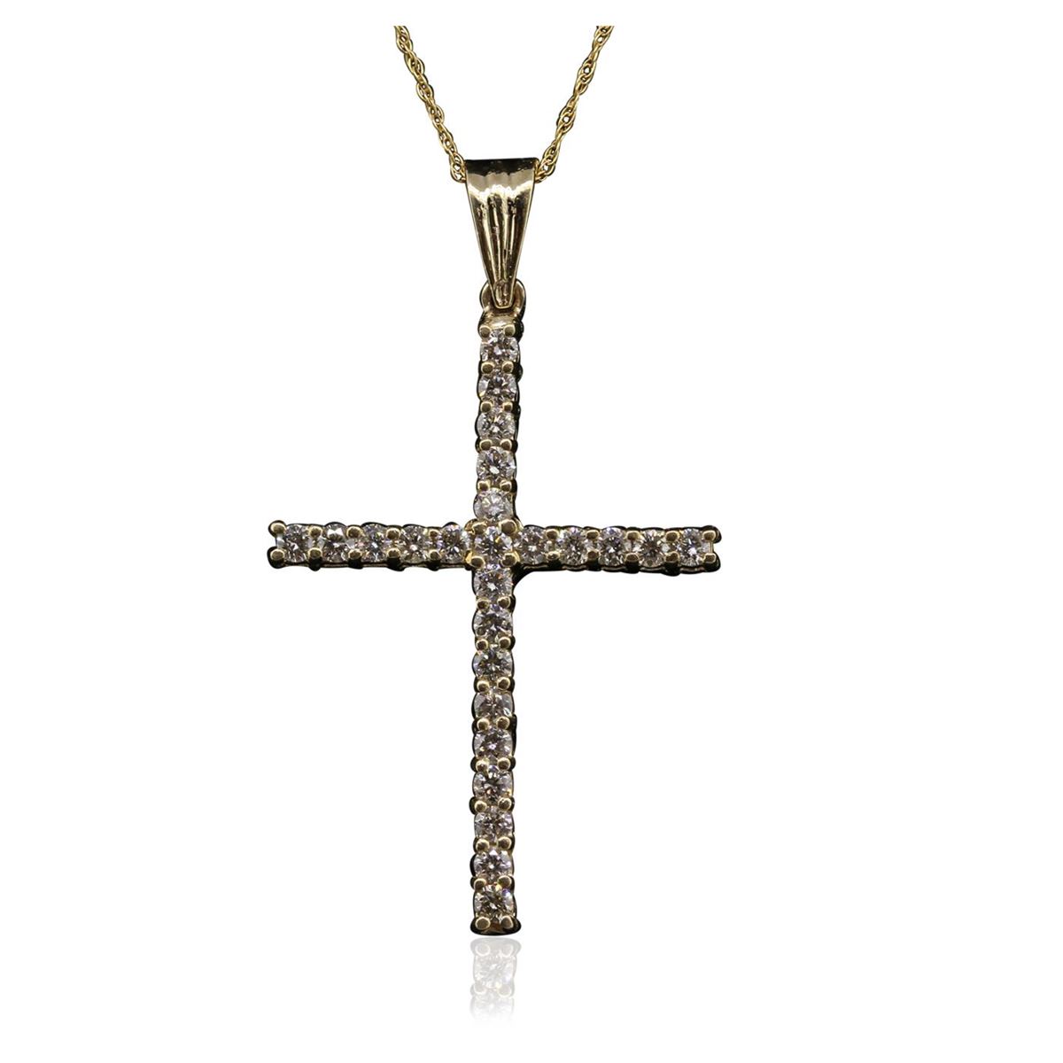 One Pendant With Chain featuring: 14KT Yellow Gold with a total weight of 4.15 grams, and Diamonds with a total weight of 1.00ctw.