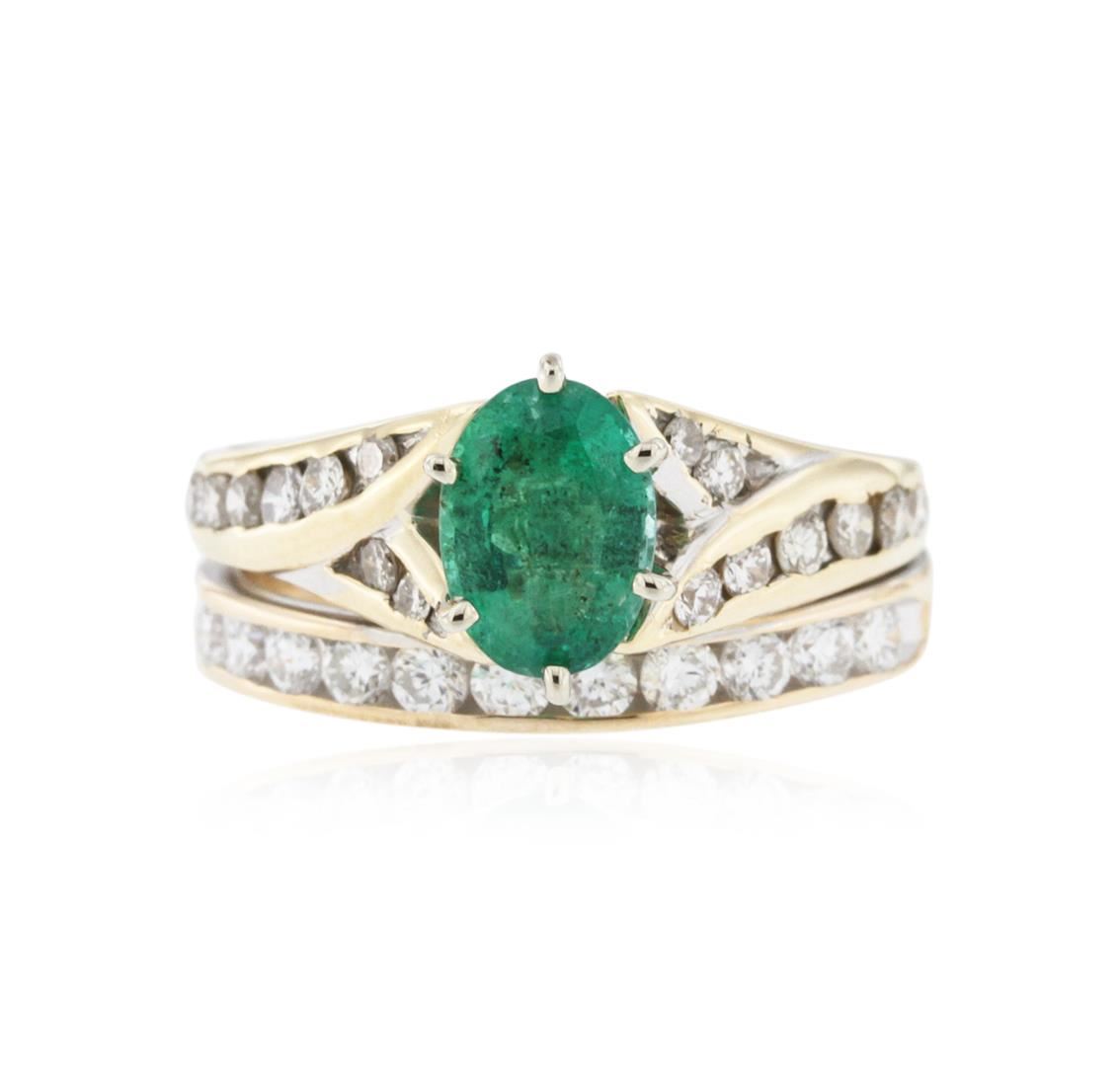 One ring featuring: 14KT yellow gold weighing 5.38 grams containing one emerald with a total weight of 1.00ct and diamonds with a total weight of 0.70ct.