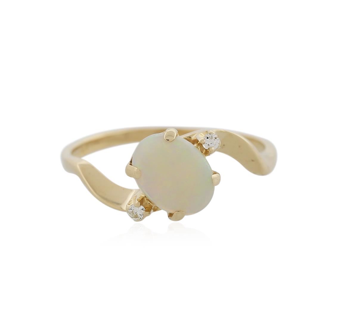 One ring featuring: 14KT yellow gold weighing 2.23 grams containing one opal center stone with a total weight of 1.00ct and diamonds with a total weight of 0.02ct.