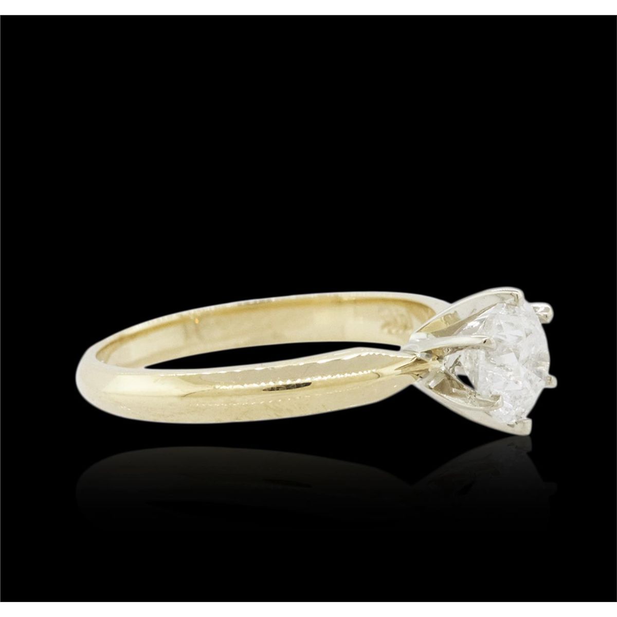 One electronically tested 14KT yellow gold ladies cast diamond solitaire ring with a bright polish finish. The ring is completed by a two millimeter wide band. Identified with markings of "14K". Condition is new, good workmanship. Containing: One prong set round brilliant cut diamond, measuring 6.10 - 6.05 x 4.30mm (depth est.), 4.00.%. GTCF approximate weight of 1.10ct. Graded in the setting. Clarity: I-2. Color: 70.8%. Table 54.4%. Total Weight of Diamonds 1.10ct. Total Weight of Ring 2.99 grams. AIG Appraised at $6,960.00.