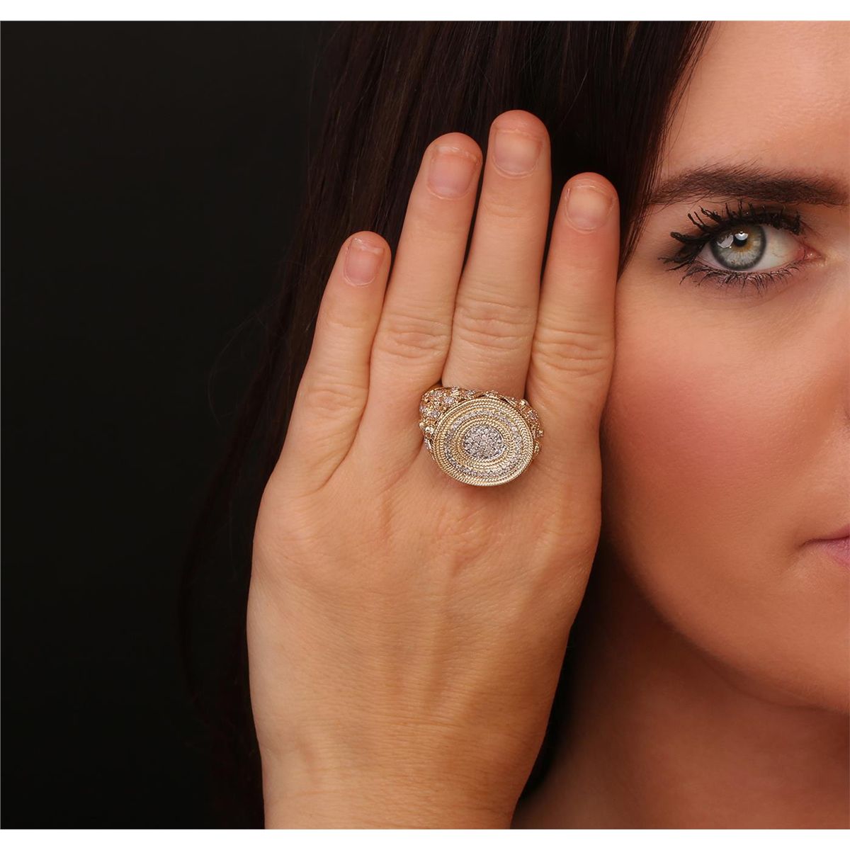 One electronically tested 14KT yellow gold Ladies combination cast & assembled fashion ring with a bright polish finish. Condition is very good. Containing: One Hundred Ten bead set single cut diamonds, measuring 1.50 - 1.30 x 0.84mm (depth est.) approximate. Total Weight of 110 Stones = 1.10ct. Clarity: I-2 to I-3. Color: H - I, Cut is Fair. Total Weight of Diamonds 1.10ct. Total Weight of Ring 12.20gm. GGL Appraised at $6,210.00.