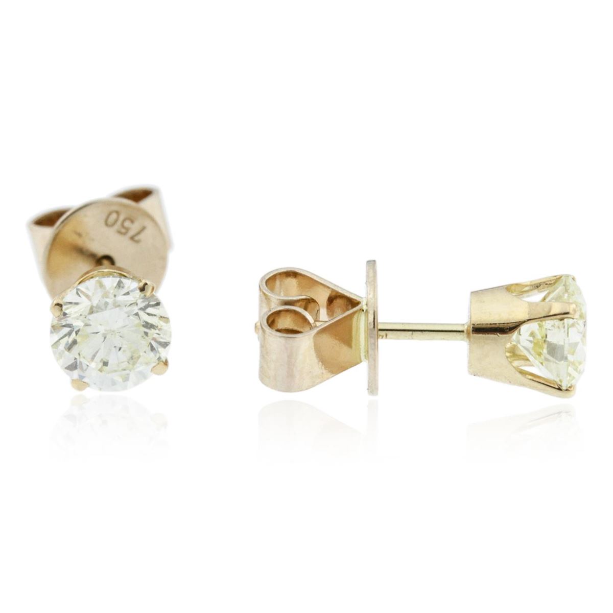 One pair of stud earrings featuring: 14KT yellow gold weighing 1.00 grams containing two round diamonds with a total weight of 1.17ct.