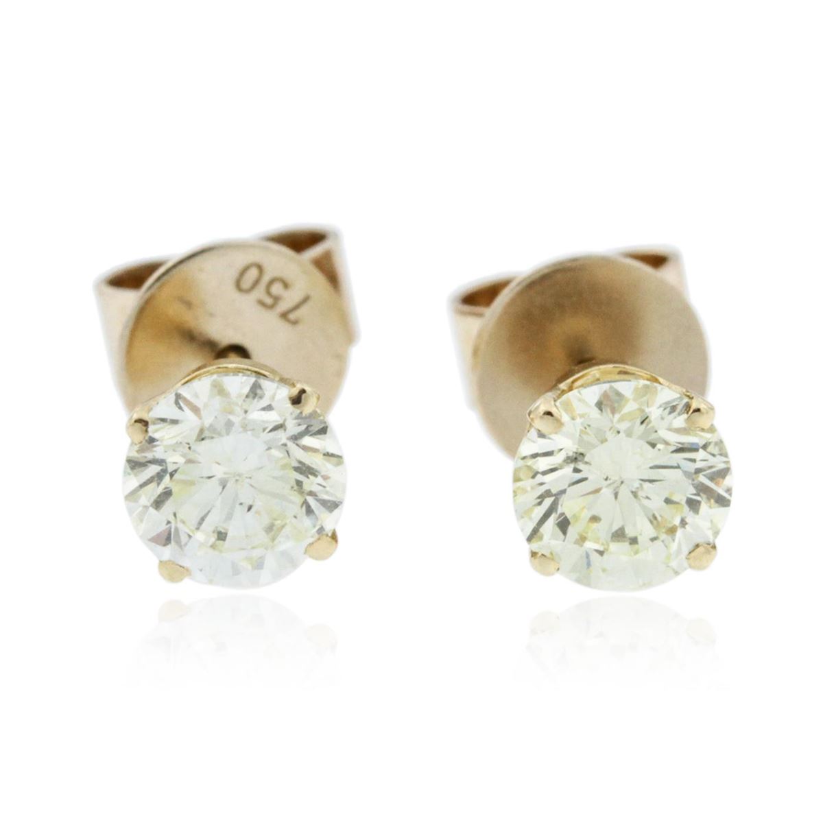 One pair of stud earrings featuring: 14KT yellow gold weighing 1.00 grams containing two round diamonds with a total weight of 1.17ct.