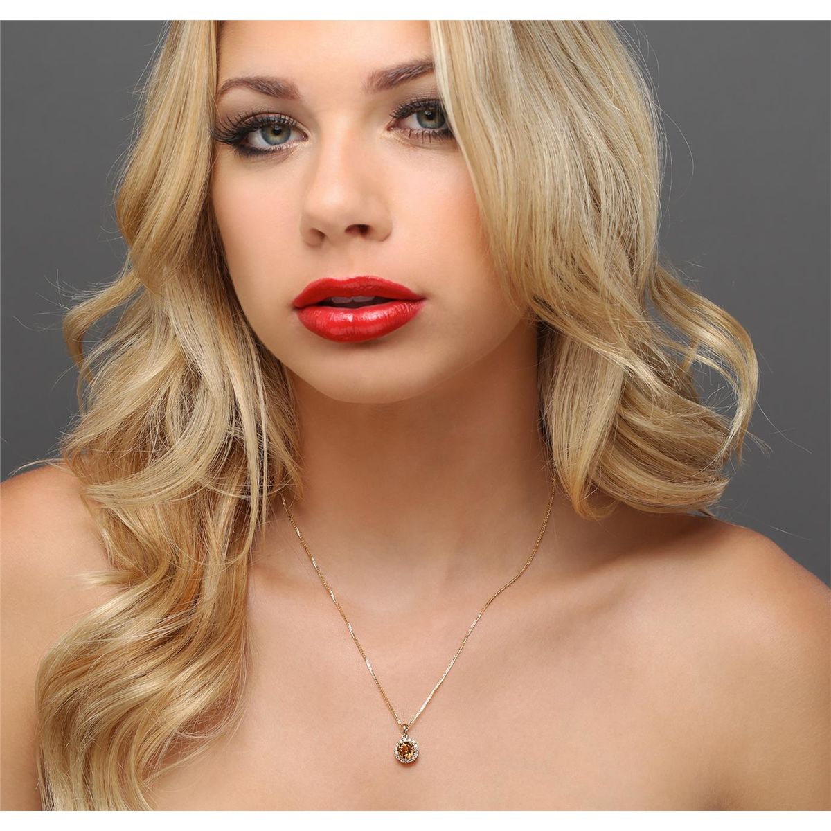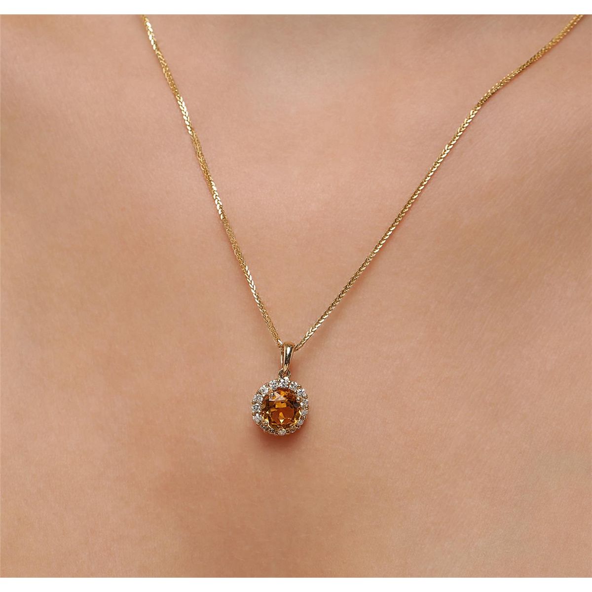 14KT Yellow Gold 1.22ct Citrine Quartz and Diamond Pendant With Chain