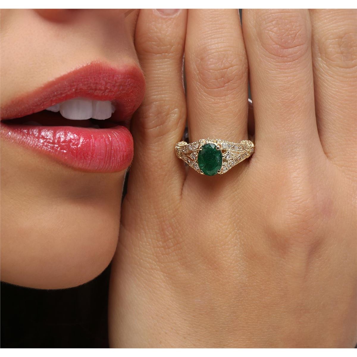 One ring featuring: 14KT yellow gold weighing 4.06 grams containing one emerald center stone with a total weight of 1.25ct and round diamonds with a total weight of 0.38cts.