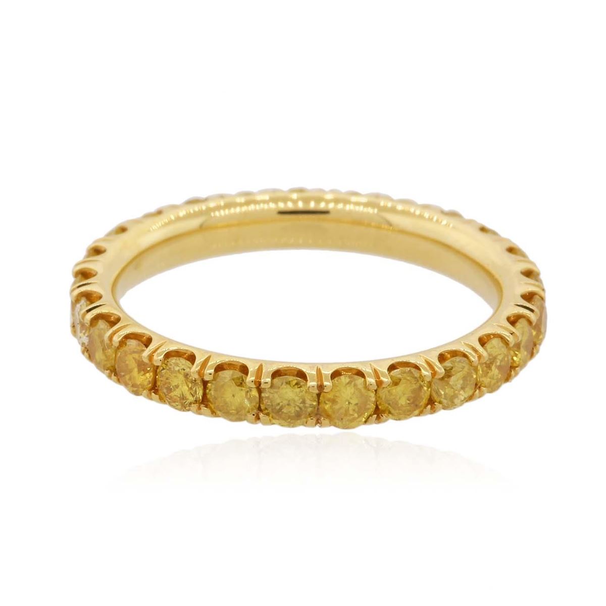 One electronically tested 14KT yellow gold Ladies combination cast & assembled wedding band with a bright polish finish. Condition is very good. Identified with markings of "14K". Containing: Twenty-Five prong set round brilliant cut diamonds, measuring 2.40 - 2.40 x 1.44mm (depth est.) approximate. Total Weight of 25 Stones = 1.27ct. Clarity: I-1 to I-2, Cut is Good. Color of the diamonds has been enhanced. All diamonds are graded in the mounting, unless otherwise stated. Total Weight of Diamonds 1.27ct. Total Weight of Wedding Band 2.30 grams.. GGL Appraised at $5,860.00.