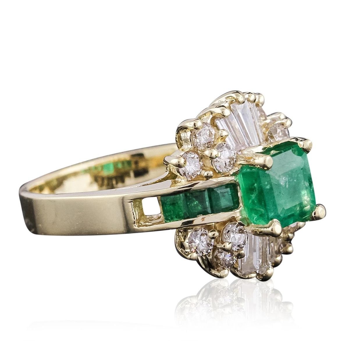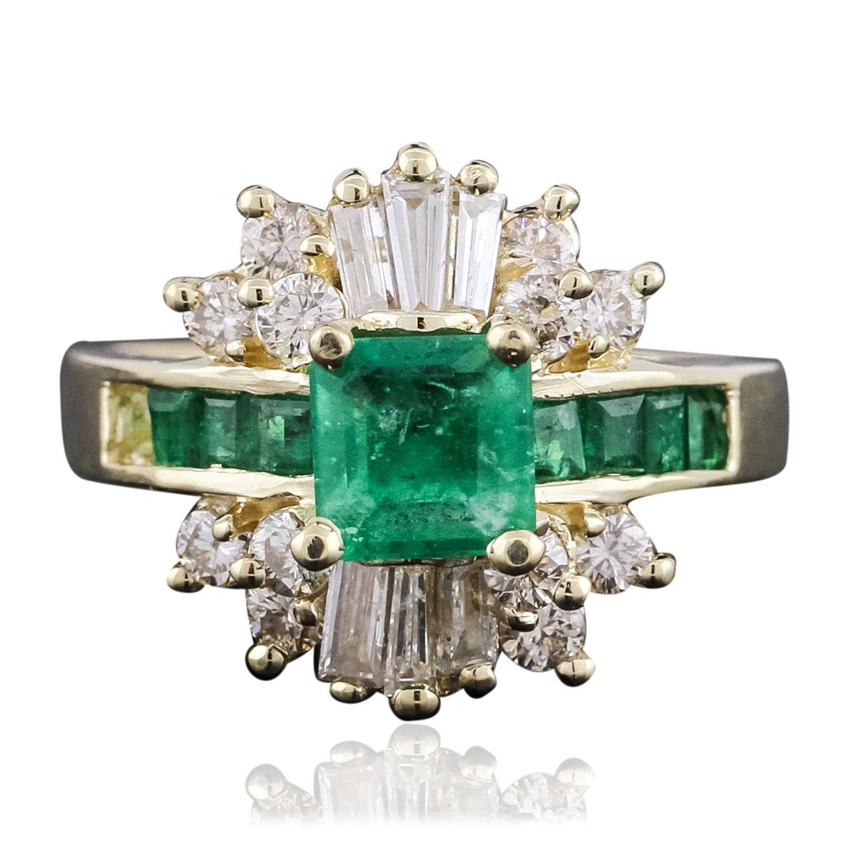 One ring featuring: 14KT Yellow Gold with a total weight of 5.30 grams, Emerald with a total weight of 1.32ct, and Diamonds with a total weight of 0.52ctw.