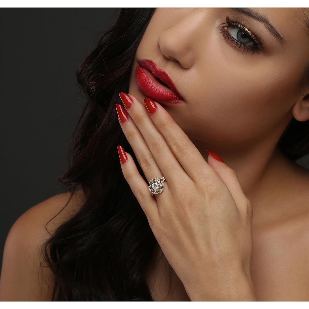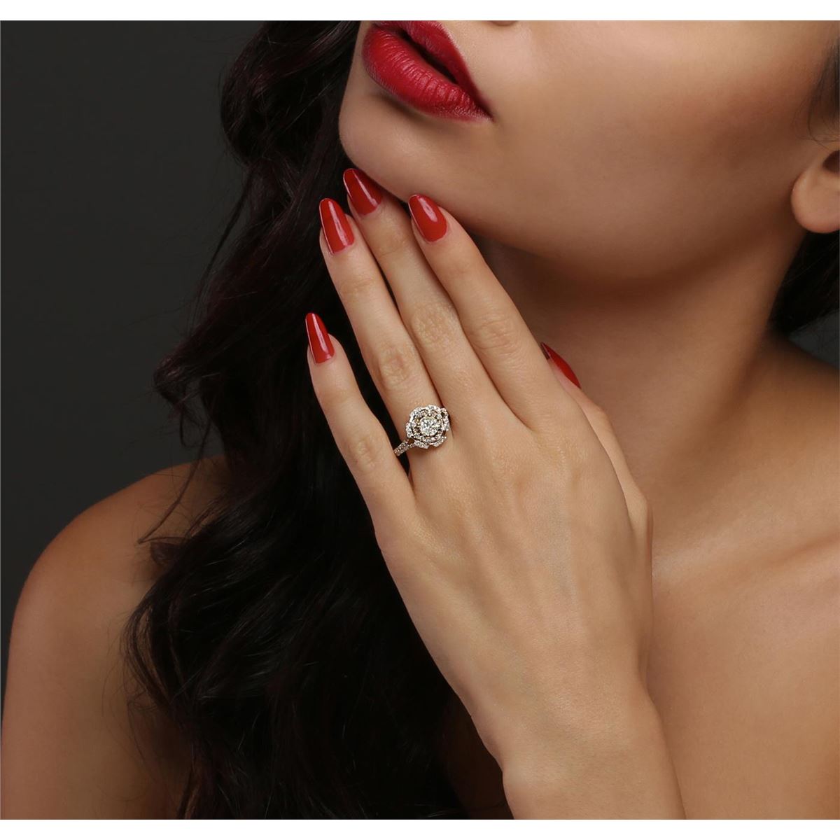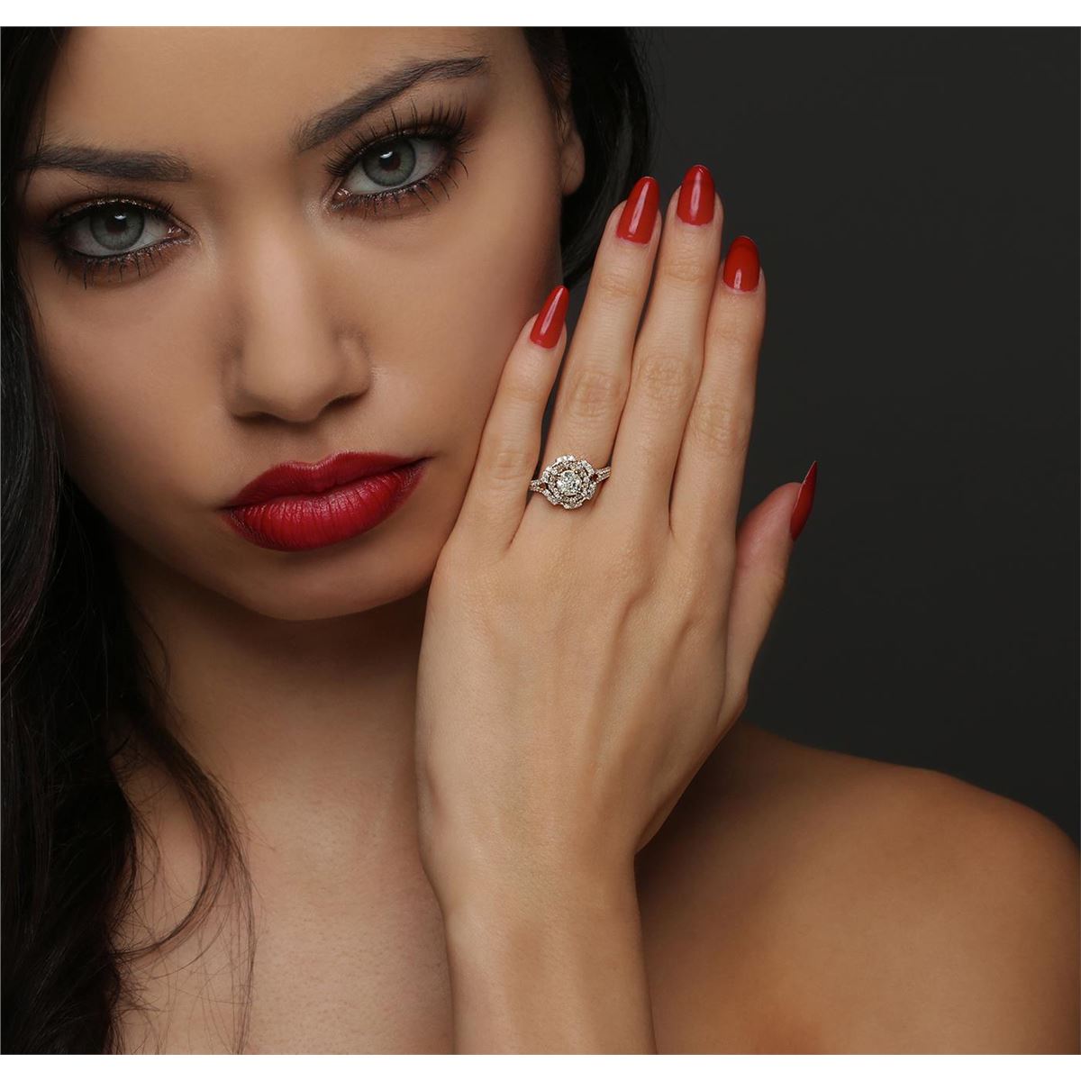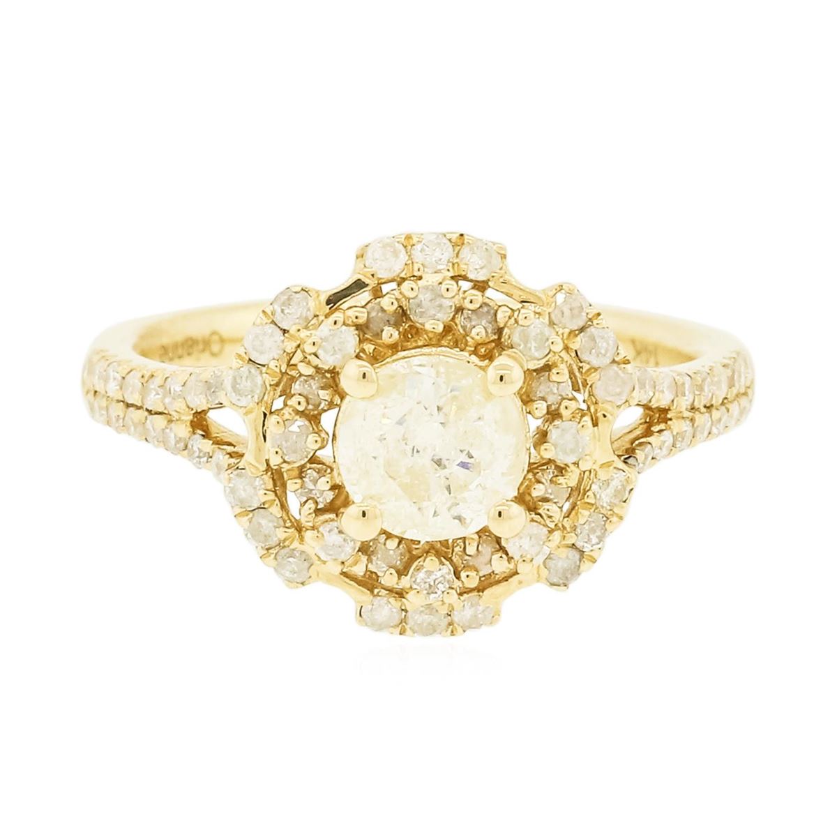 One electronically tested 14KT yellow gold ladies cast diamond unity ring with a bright polish finish. The featured diamond is set within a stylized diamond bezel supported by diamond set split shoulders, completed by a two millimeter wide band. Trademark is Orianne. Identified with markings of "14K". Condition is new, good workmanship. Containing: One prong set round brilliant cut diamond, measuring 5.65 - 5.64 x 3.50mm (depth est.) approximate weight of 0.78ct. Graded in the setting. Clarity: I-2. Depth: 62.0%. Table 56.6%. Seventy prong set round brilliant cut diamonds, measuring 1.40 - 1.20 x 0.78mm (depth est.) approximate total weight of 70 Stones = 0.66ct. Graded in the setting. Clarity: I-2 to I-3. Color: H - J. Total Weight of Diamonds 1.44ct. Total Weight of Unity Ring 4.41 grams. AIG Appraised at $4,700.00.