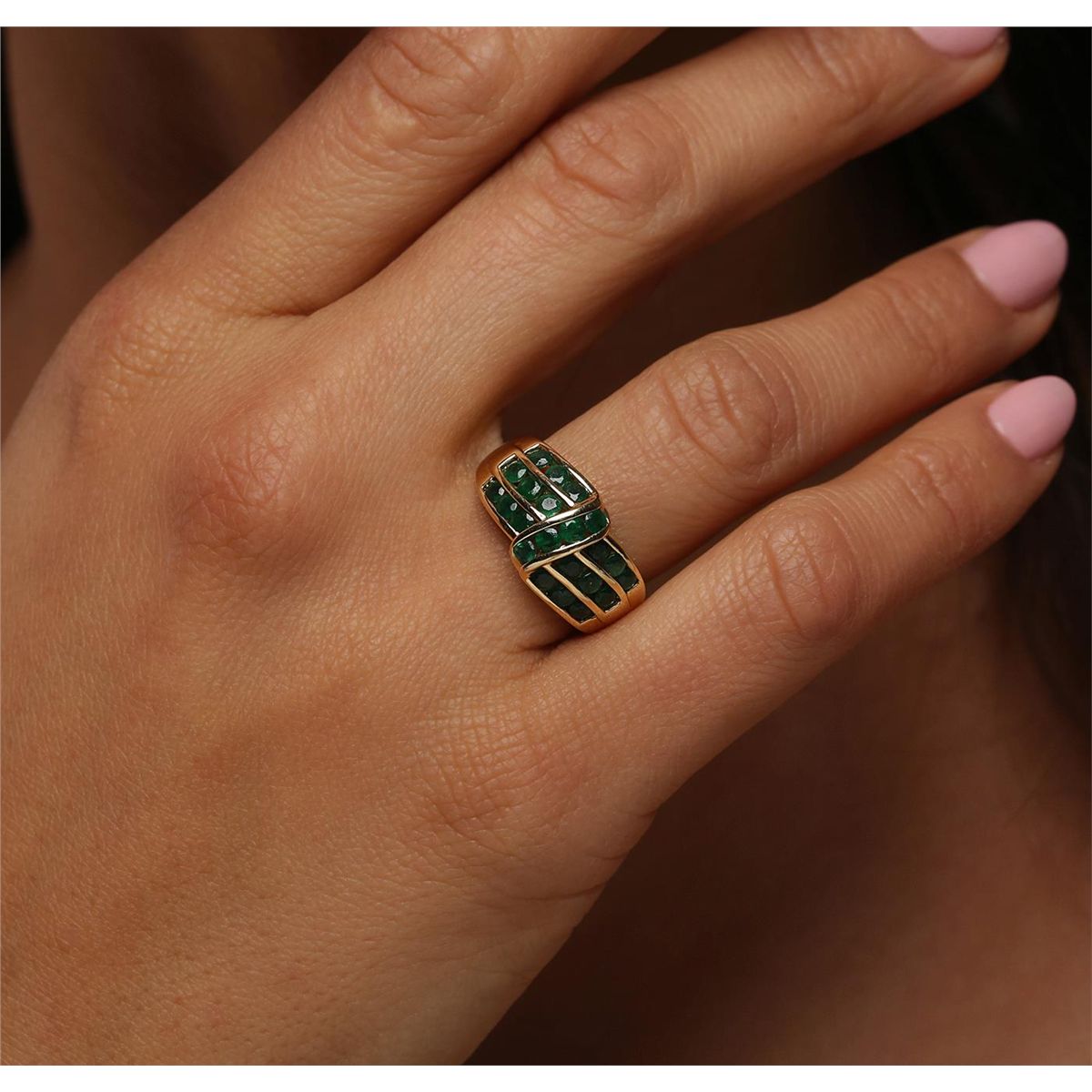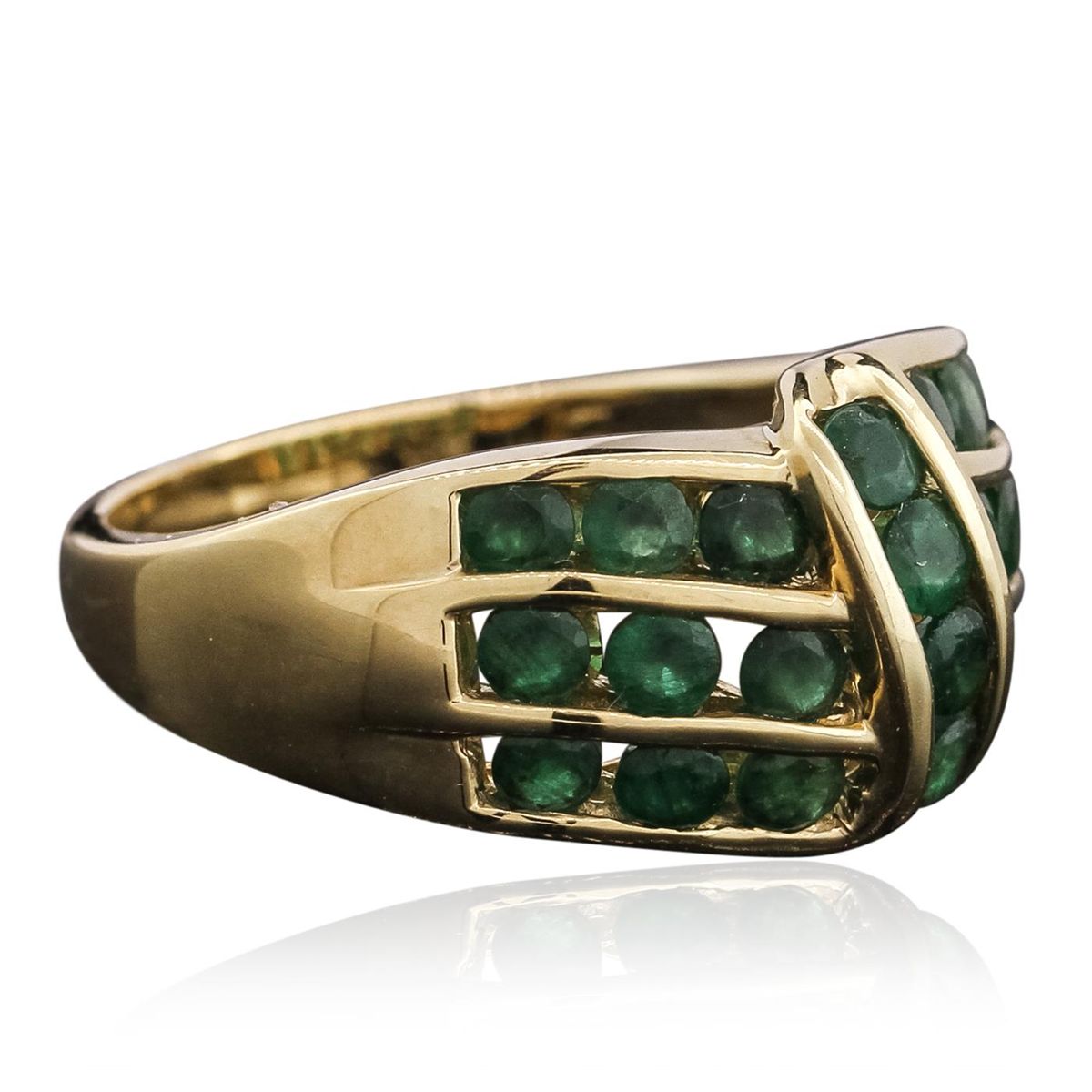One ring featuring: 14KT yellow gold weighing 5.23 grams containing 22 emeralds with a total weight of 1.53cts.