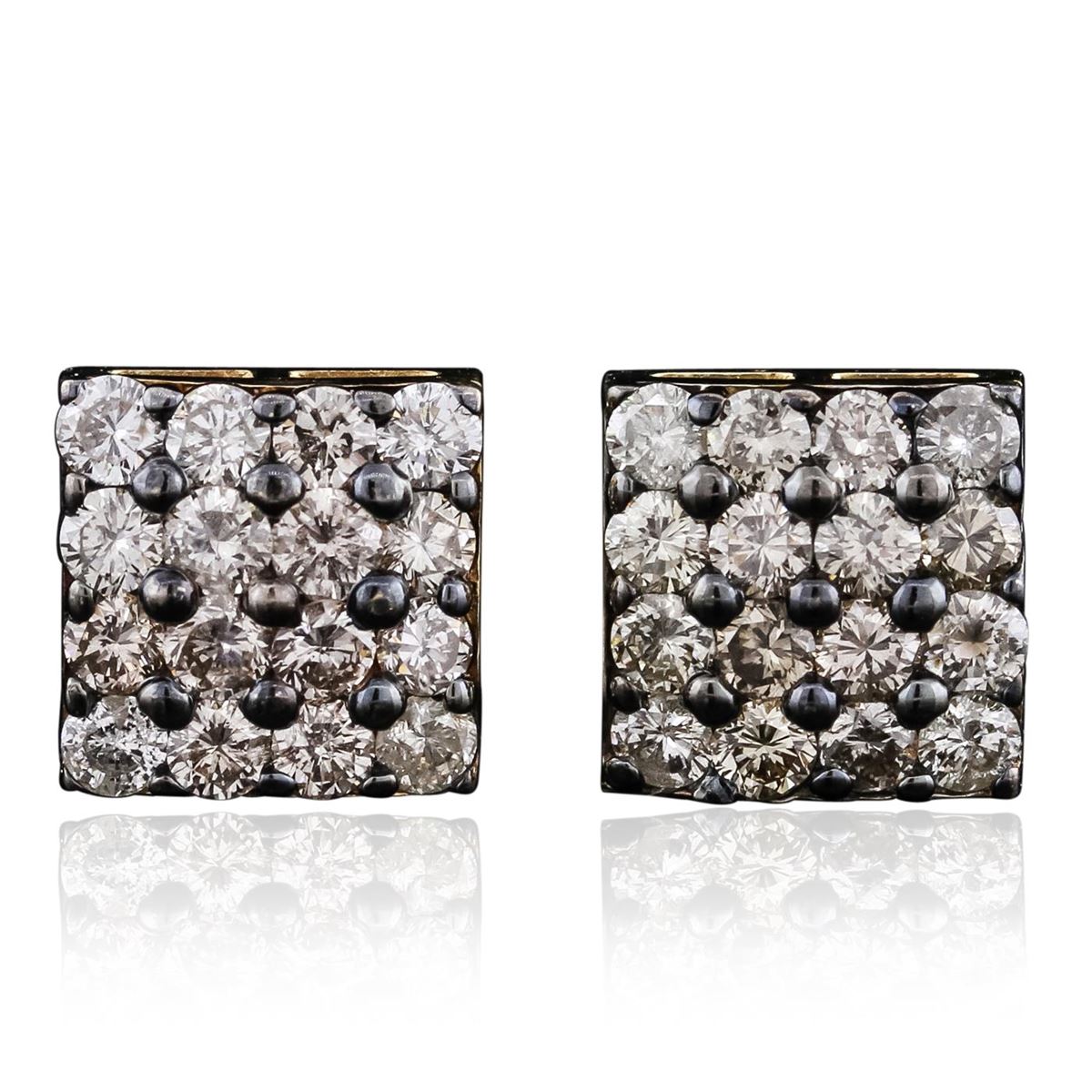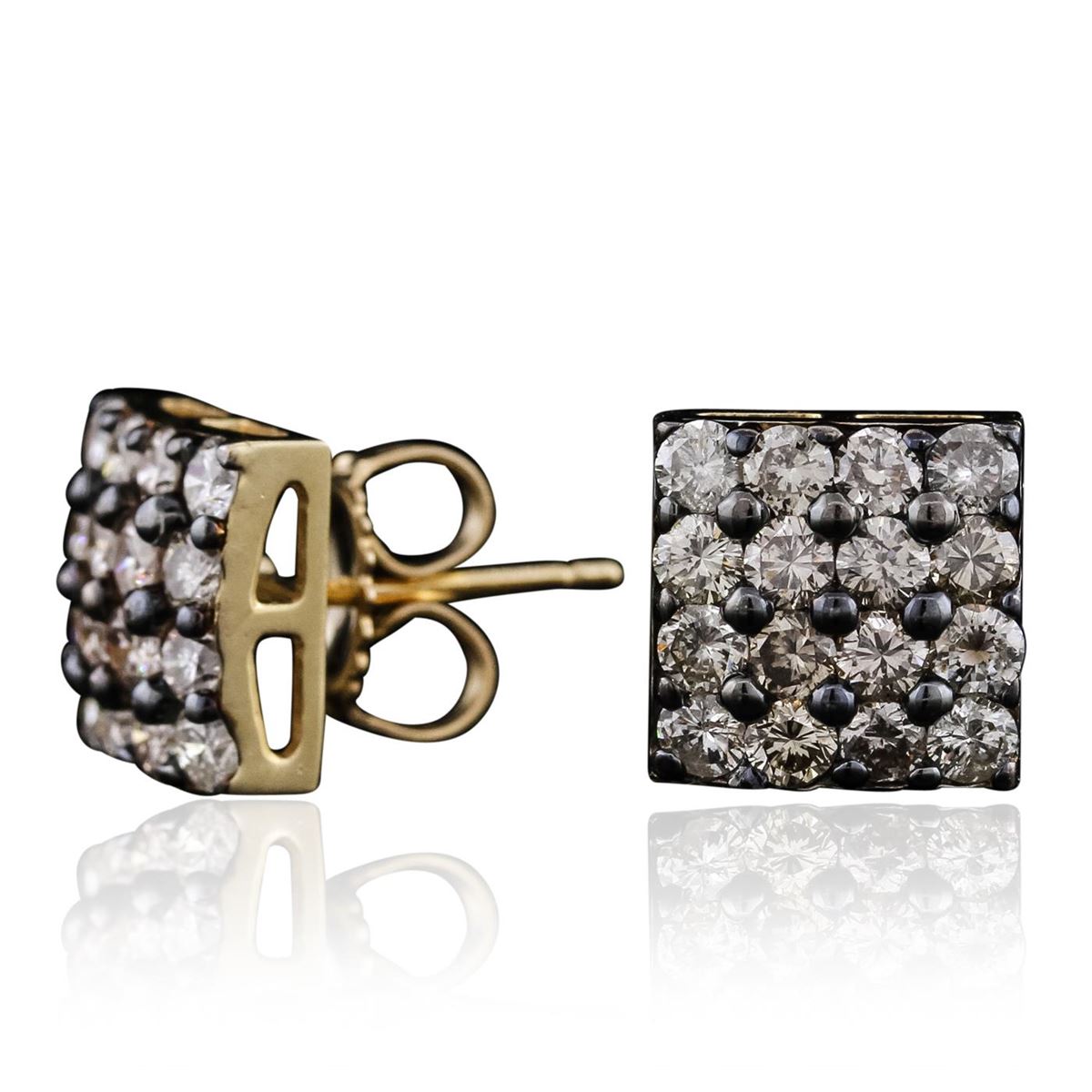 One pair of earrings featuring: 14KT Yellow Gold with a total weight of 3.00 grams, Diamonds with a total weight of 1.57ctw, and (32) rhodium.