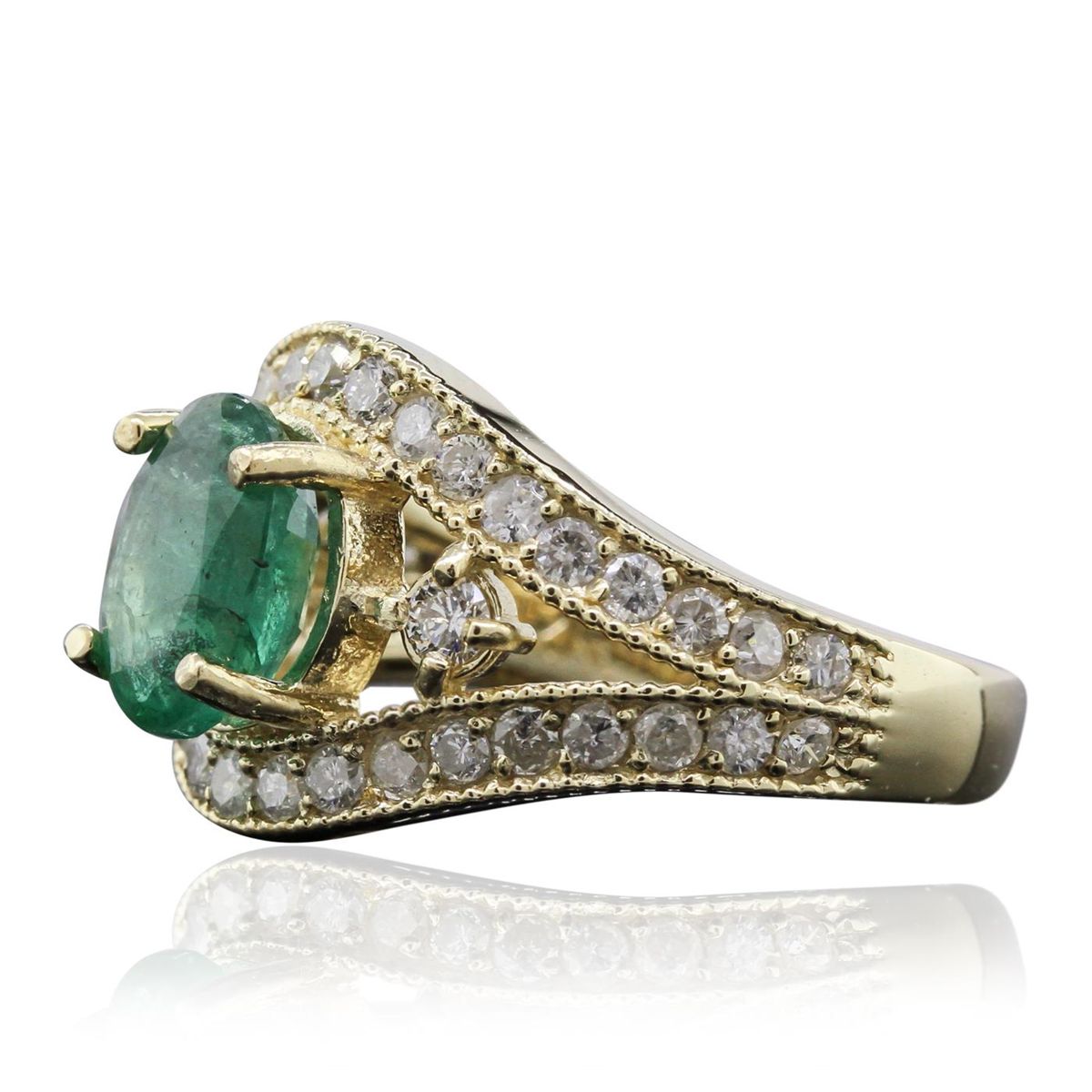 Great Condition! One electronically tested 14KT yellow gold Ladies combination cast & assembled ring with a bright polish finish. Condition is new. Identified with markings of "14K". Containing: One prong set oval modified brilliant cut natural emerald, measuring 8.70 x 6.90 x 4.50mm, approximate weight of 1.58ct., clarity is moderately included, type III, medium light, very slightly grayish, very slightly bluish green color, (GIA vslbG 4/3), cut is good. Colored gemstones are presumed to have been subjected to commonly used and possible undetectable color/clarity enhancement processes. Forty prong set round brilliant cut diamonds, measuring 2.20 - 1.80 x 1.20mm (depth est.) approximate total weight of 40 Stones = 0.66ct. Clarity of I-1 to I-2, Color of H - I, Cut is Good. Total Weight of Colored Stones 1.58ct. Total Weight of Diamonds 0.66ct. Total Weight of Ring 5.70 grams. GGL Appraised at $6,440.00.