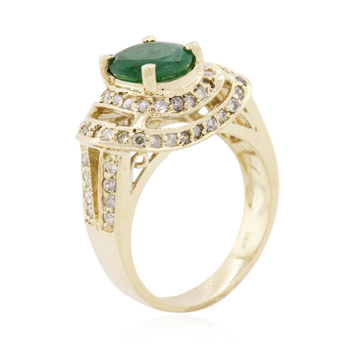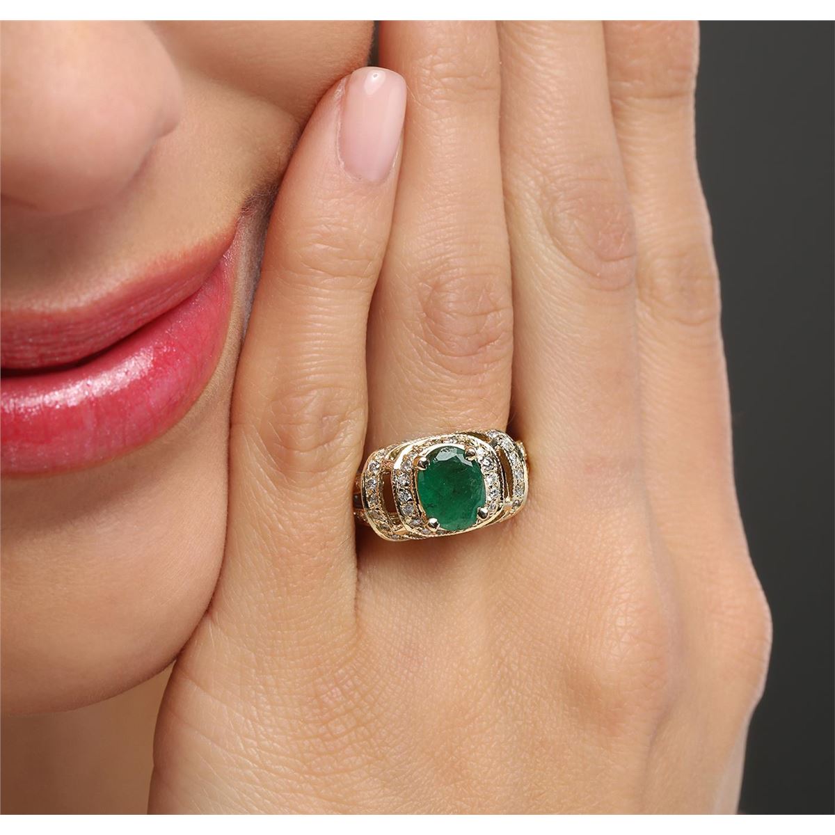 One ring featuring: 14KT yellow gold weighing 7.05 grams containing one emerald center stone with a total weight of 1.64ct and round diamonds with a total weight of 0.63cts.