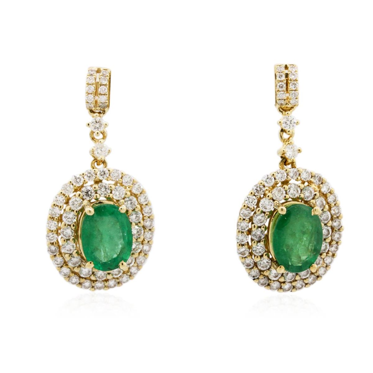 14KT Yellow Gold 1.84 ctw Emerald and Diamond Earrings