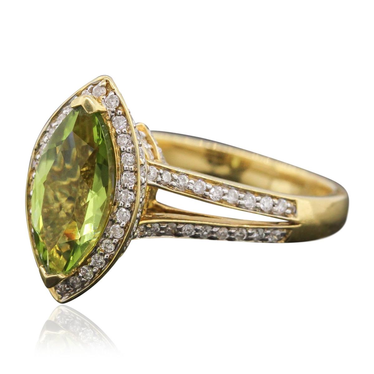 One ring featuring: 14KT yellow gold with a total weight of 5.43 grams, tsavorite with a total weight of 1.85ct, and diamonds with a total weight of 0.62ctw.