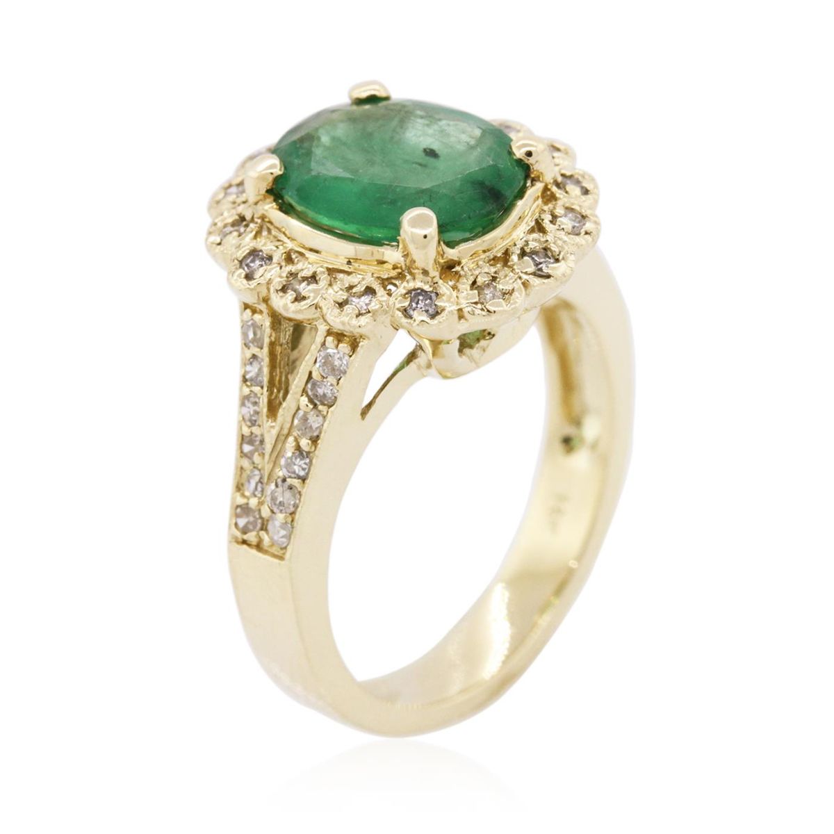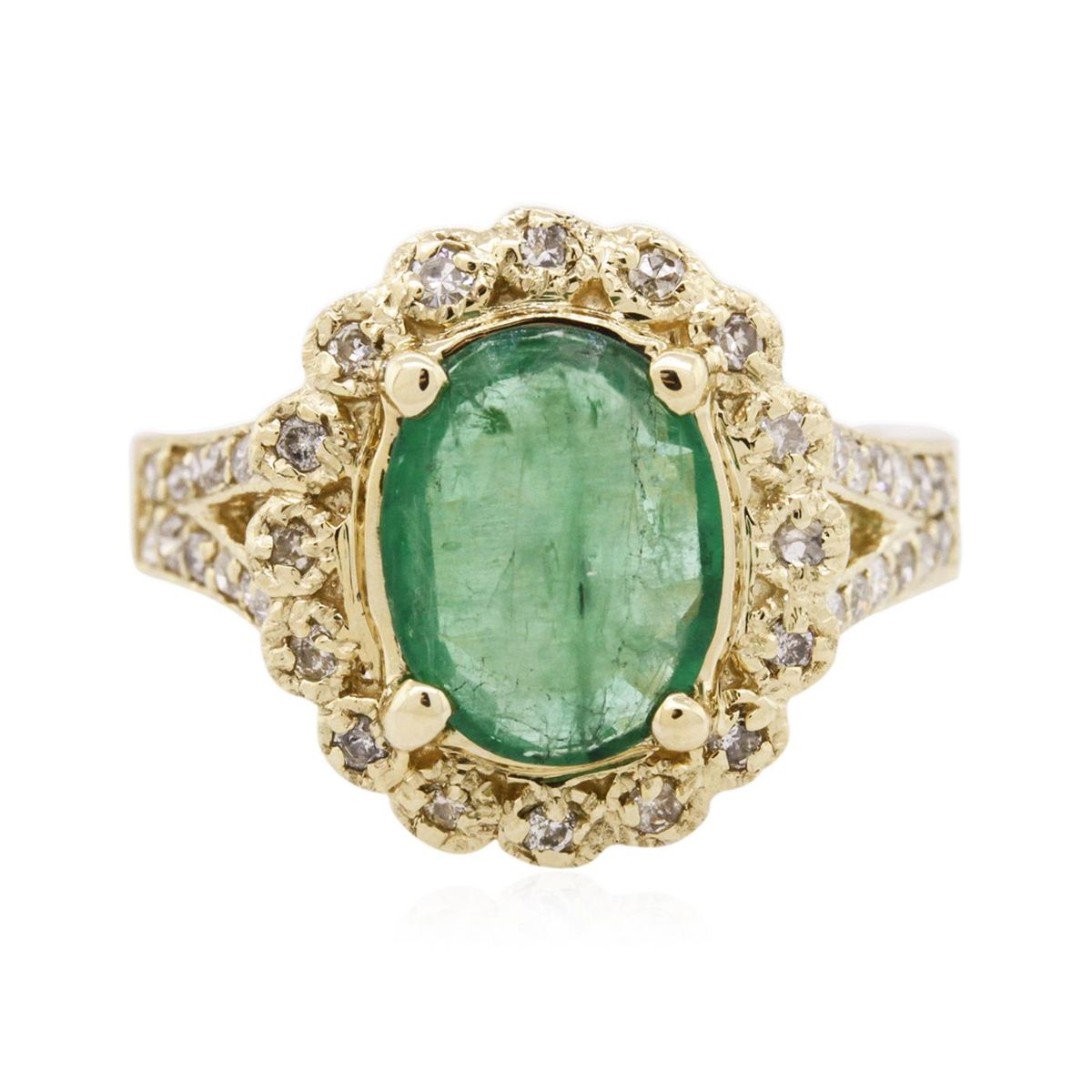 One ring featuring: 14KT yellow gold weighing 7.40 grams containing one emerald center stone with a total weight of 1.89ct and round diamonds with a total weight of 0.43cts.