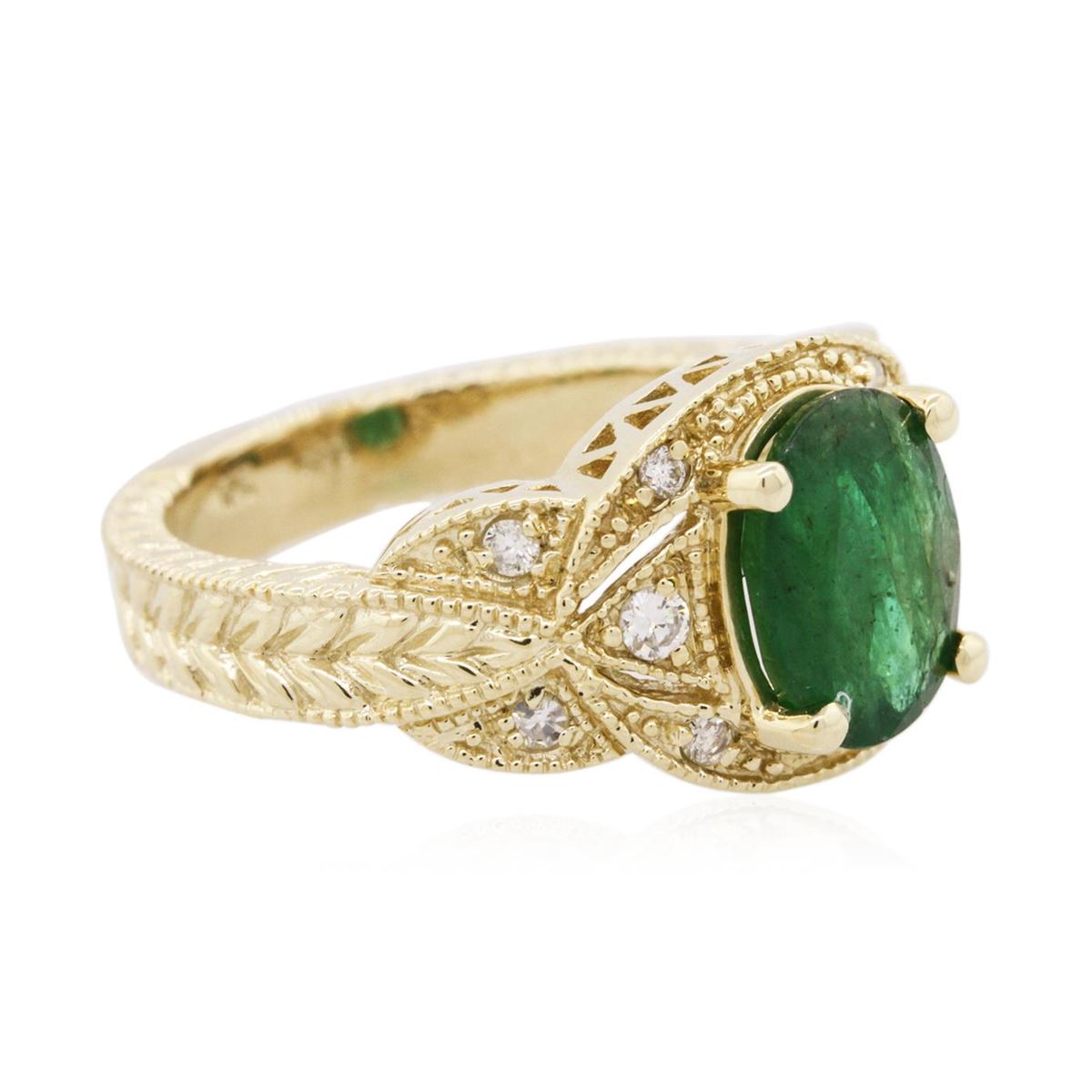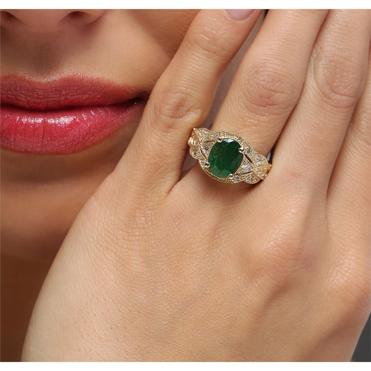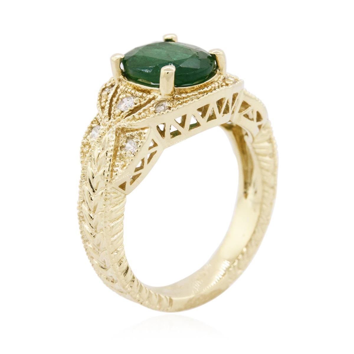 One ring featuring: 14KT yellow gold weighing 7.17 grams containing one emerald center stone with a total weight of 1.90ct and round diamonds with a total weight of 0.12cts.