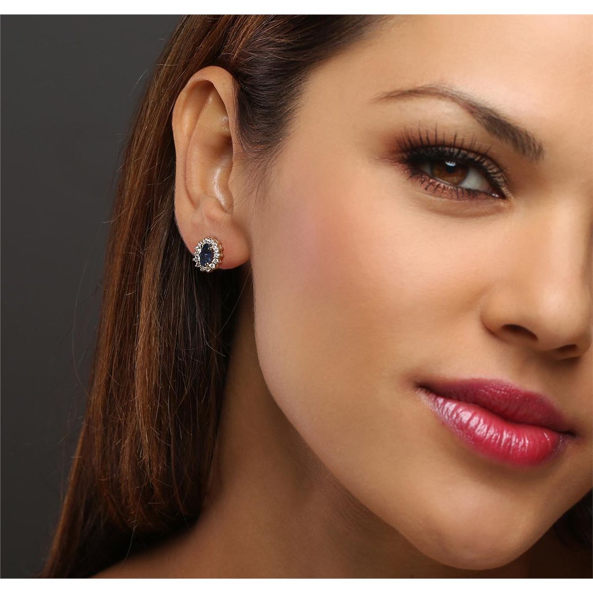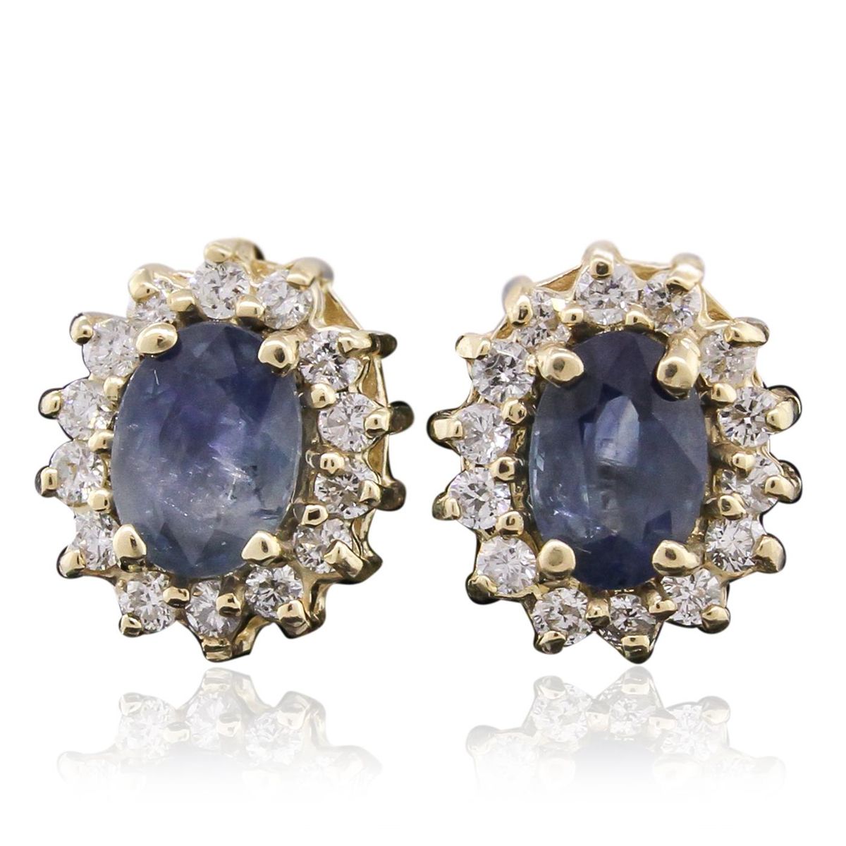 One pair of earrings featuring: 14KT Yellow Gold with a total weight of 3.2 grams, Sapphire with a total weight of 1.91ctw, and Diamonds with a total weight of 0.55ctw.