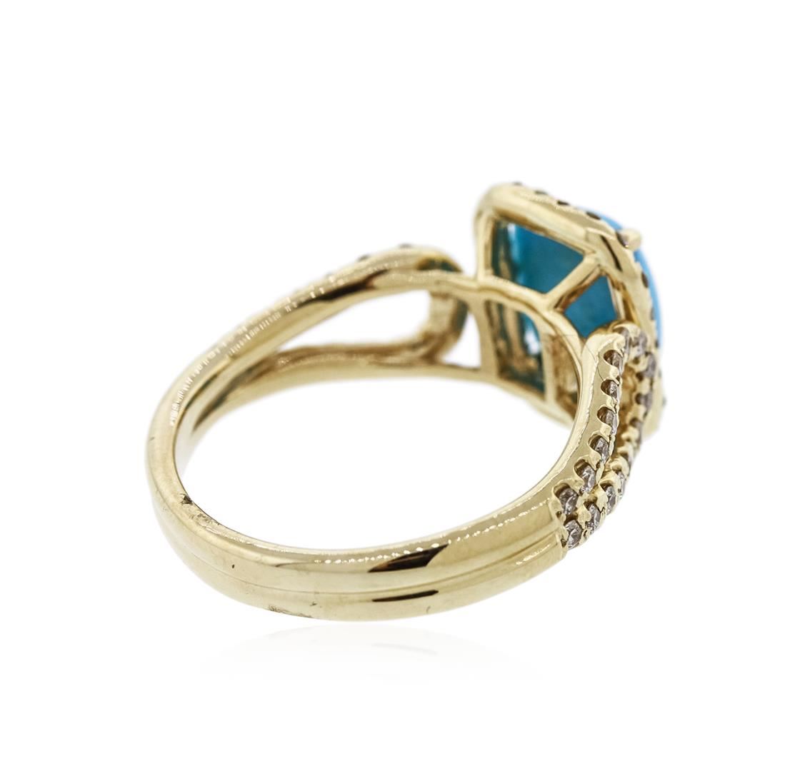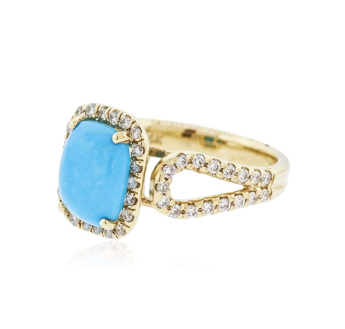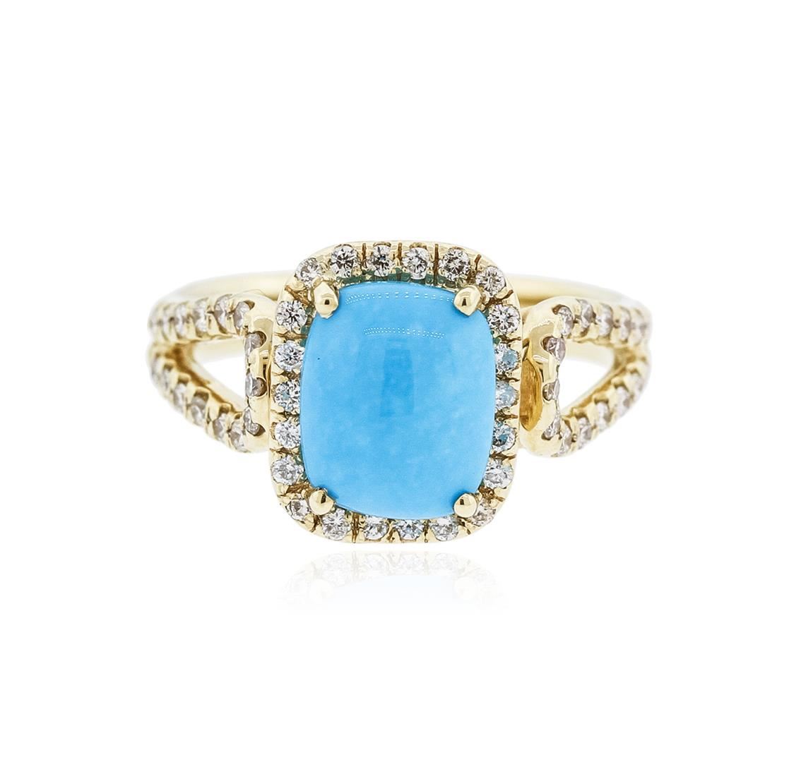 One ring featuring: 14KT yellow gold weighing 4.80 grams containing one turquoise center stone with a total weight of 1.95ct and 56 round diamonds with a total weight of 0.55ct.