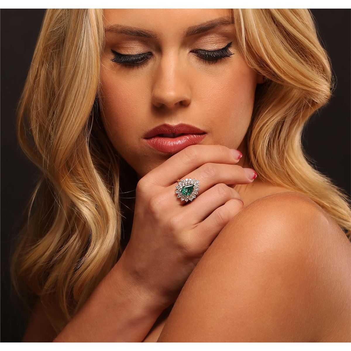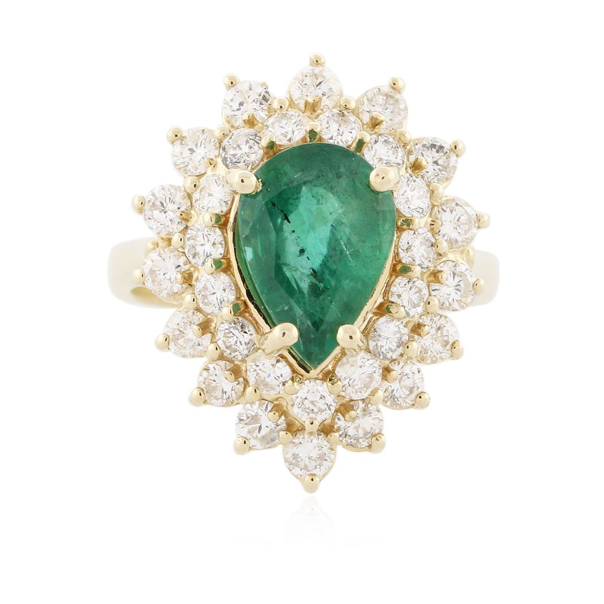 Great Condition! One electronically tested 14KT yellow gold Ladies combination cast & assembled fashion ring with a bright polish finish. Condition is new. Identified with markings of "14K". Containing: One prong set emerald standard step cut natural emerald, measuring 9.10 x 7.00 x 3.80mm, approximate weight of 1.95ct., clarity is moderately included, type III, medium, very slightly grayish, very slightly bluish green color, (GIA vslbG 5/3), cut is good. Colored gemstones are presumed to have been subjected to commonly used and possible undetectable color/clarity enhancement processes. Twelve prong set round brilliant cut diamonds, measuring 3.00 - 3.00 x 1.80mm (depth est.) approximate total weight of 12 Stones = 1.19ct. Clarity of SI-2 to I-1, Color of I - J, Cut is Good. Total Weight of Colored Stones 1.95ct. Total Weight of Diamonds 1.19ct. Total Weight of Ring 7.80 grams. GGL Appraised at $9,160.00.