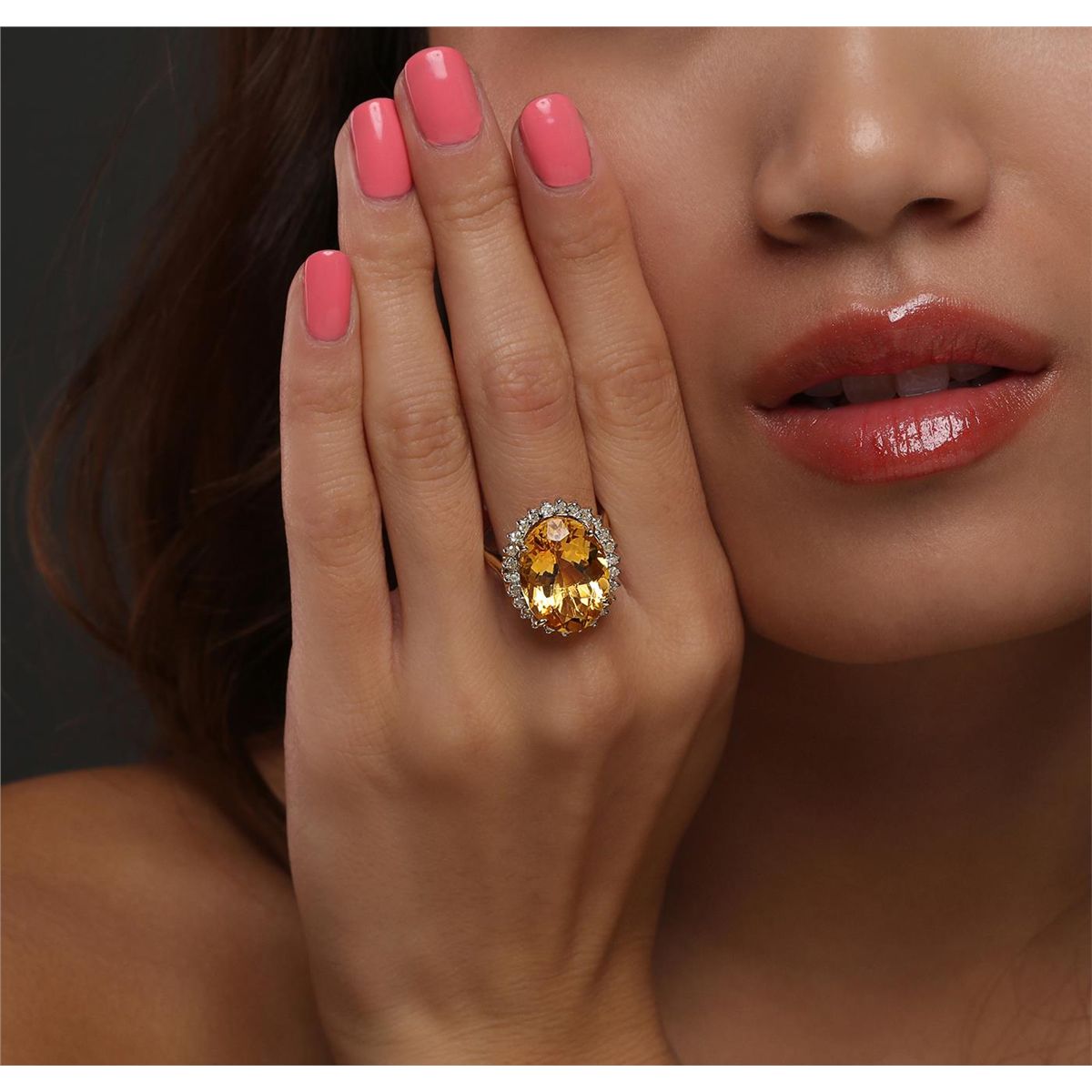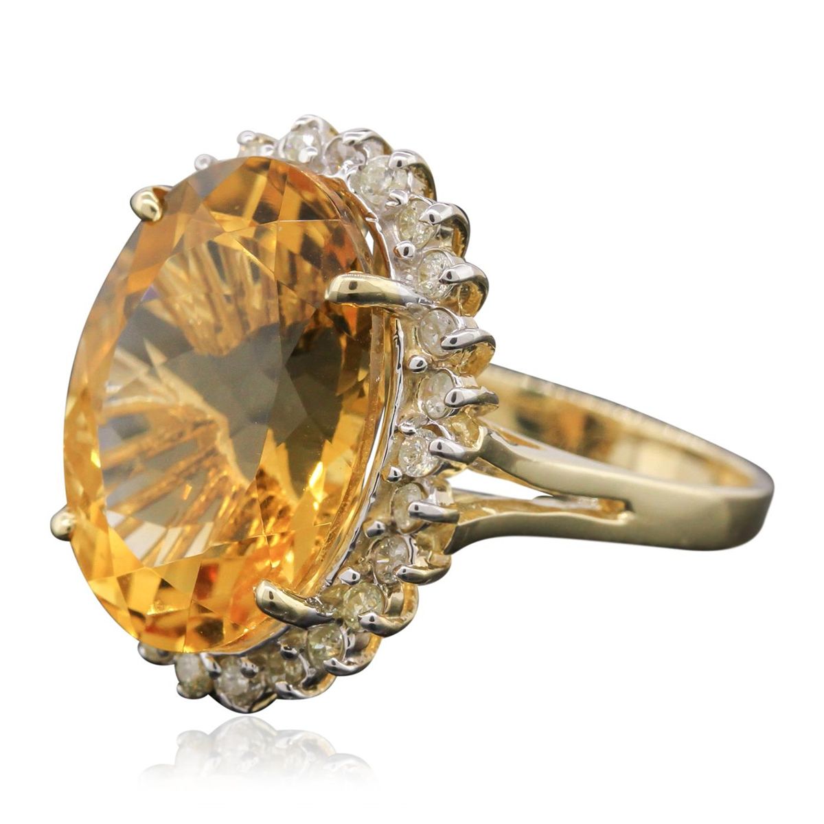One ring featuring: 14KT yellow gold with a total weight of 7.50 grams, citrine with a total weight of 10.00ct, and diamonds with a total weight of 0.28ctw.