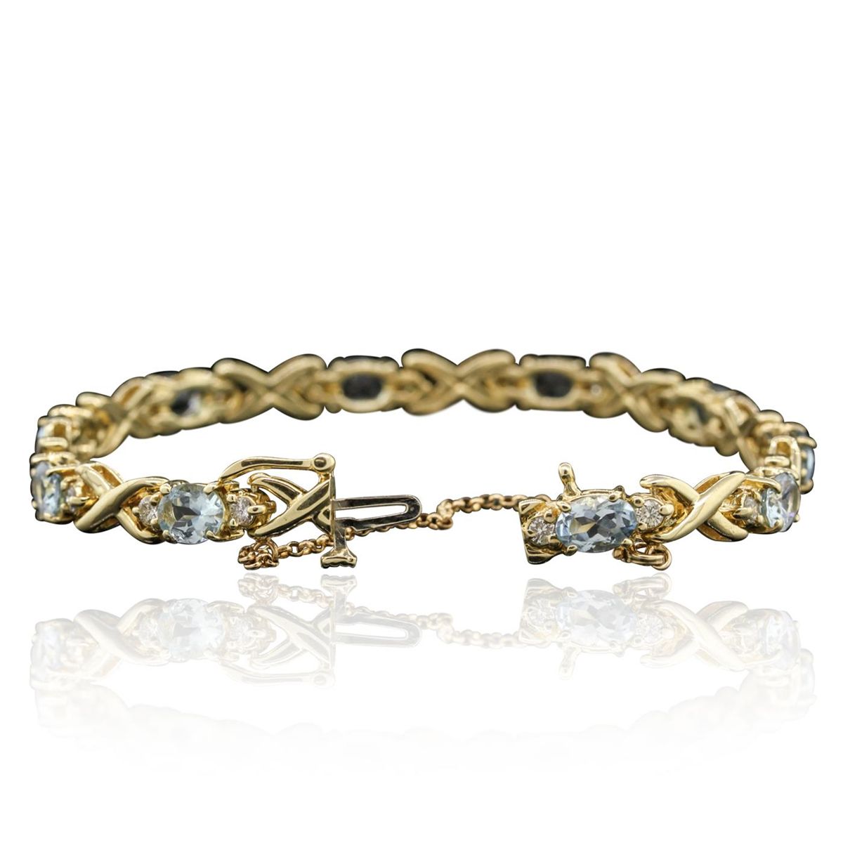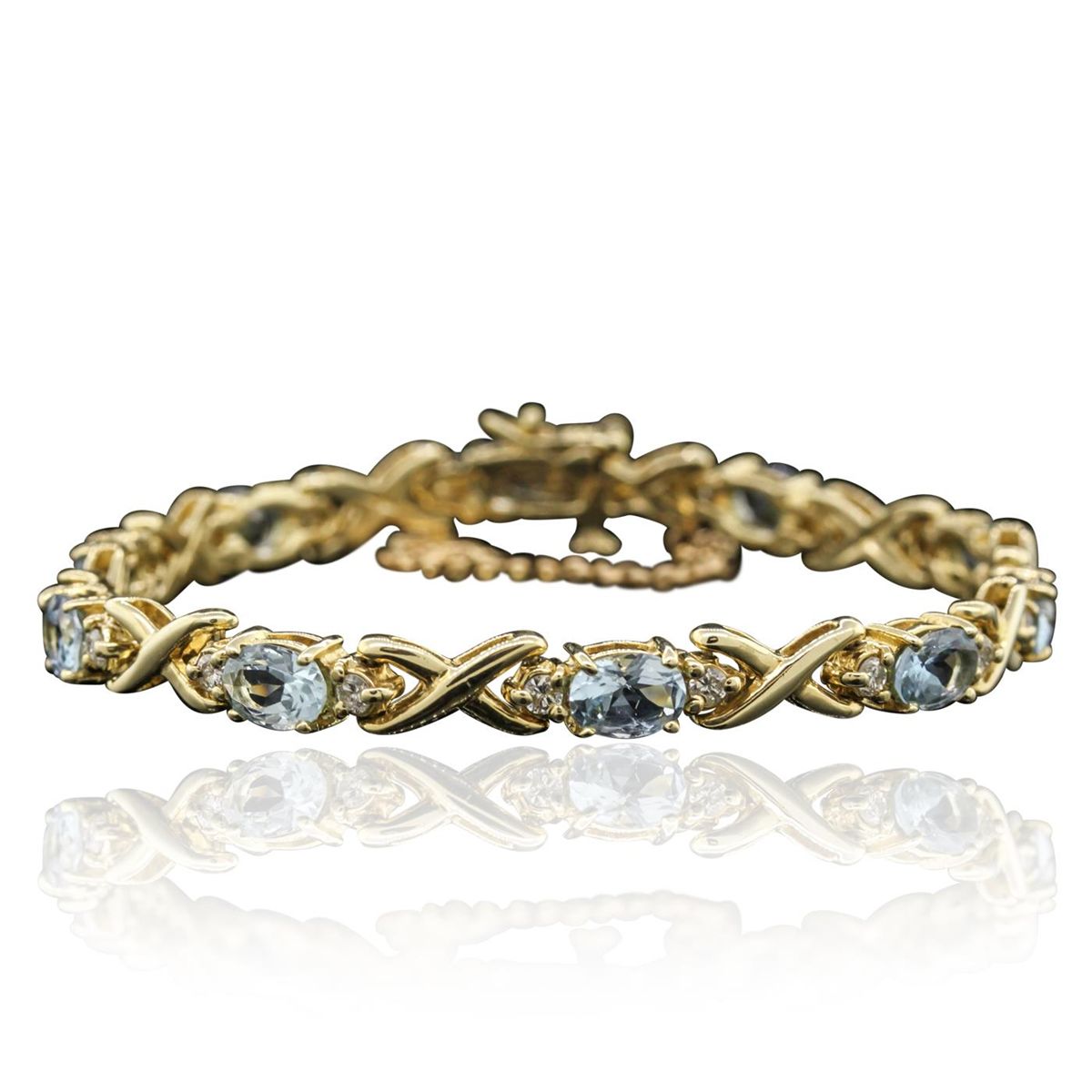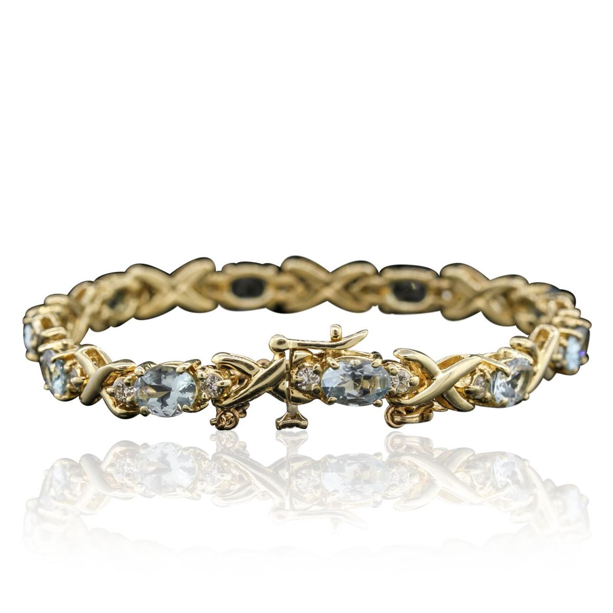One Bracelet featuring: 14KT Yellow Gold with a total weight of 19.80 grams, Aquamarine with a total weight of 10.00ct, and Diamonds with a total weight of 0.50ctw.