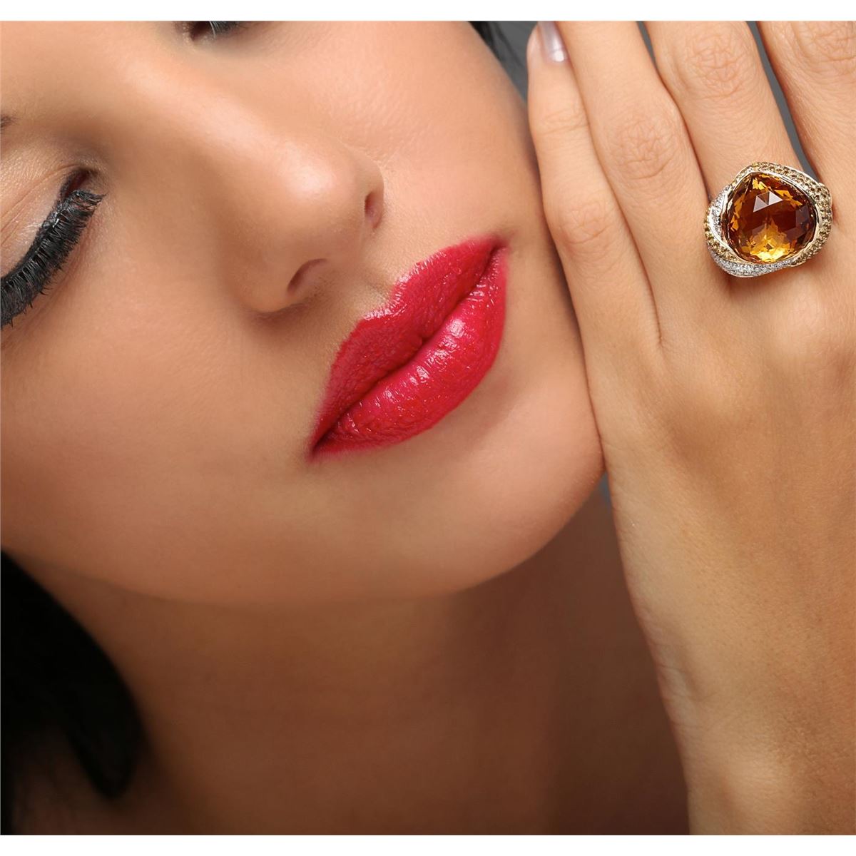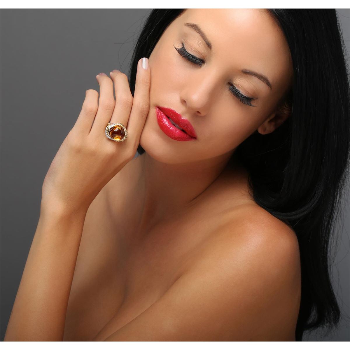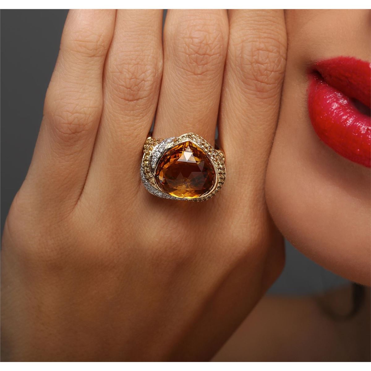 One polished, stamped, and electronically tested solid 14KT yellow gold Michael Christoff designer ring mounted with: 1 genuine citrine center stone weighing 14.22ct, 178 genuine round yellow sapphires weighing 2.40ct, and 35 genuine round diamonds weighing 0.27ct. This item weighs 9.00 grams, condition is new, excellent workmanship. AIGL Appraised at $9,600.00.