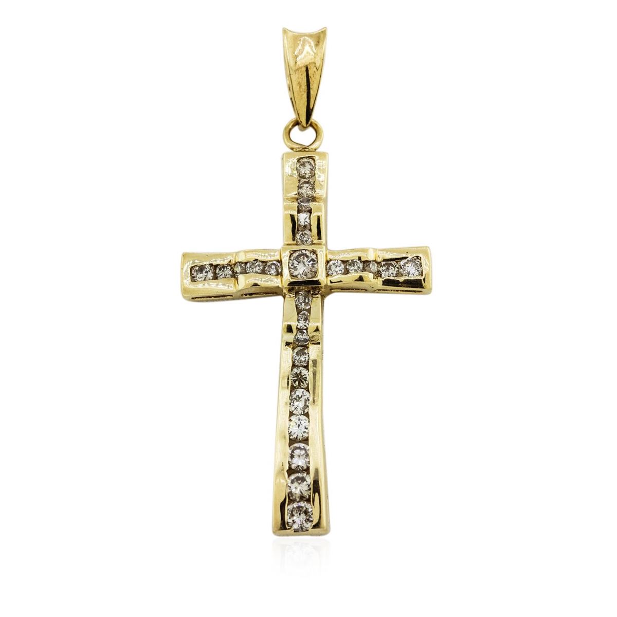 One electronically tested 14KT yellow gold Ladies combination cast & assembled cross pendant with a bright polish finish. Condition is excellent. Containing: Six channel set round brilliant cut diamonds, measuring 4.00 - 3.00 x 2.10mm (depth est.) approximate total weight of 6 Stones = 0.94ct. Clarity of I-1, Color of L - M, Cut is Good. Twenty channel set round brilliant cut diamonds, measuring 2.60 - 2.10 x 1.41mm (depth est.) approximate total weight of 20 Stones = 1.06ct. Clarity of SI-2 to I-1, Color of L - M, Cut is Good. Total Weight of Diamonds 2.00ct. Total Weight of Pendant 8.50gm. GGL Appraised at $5,540.00.