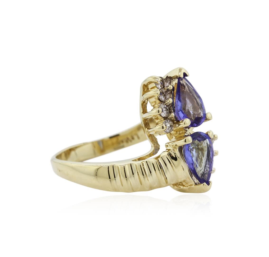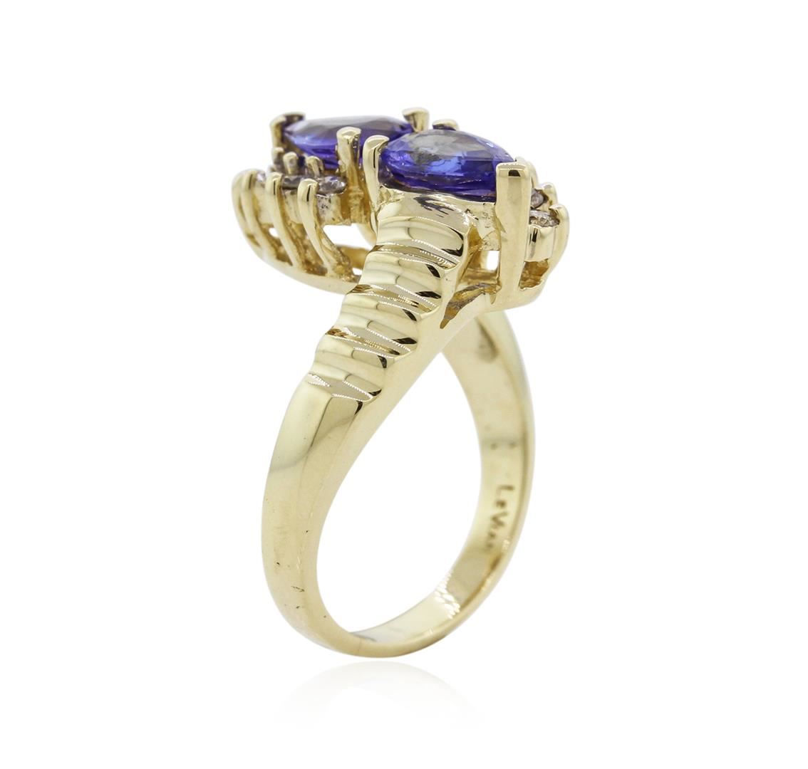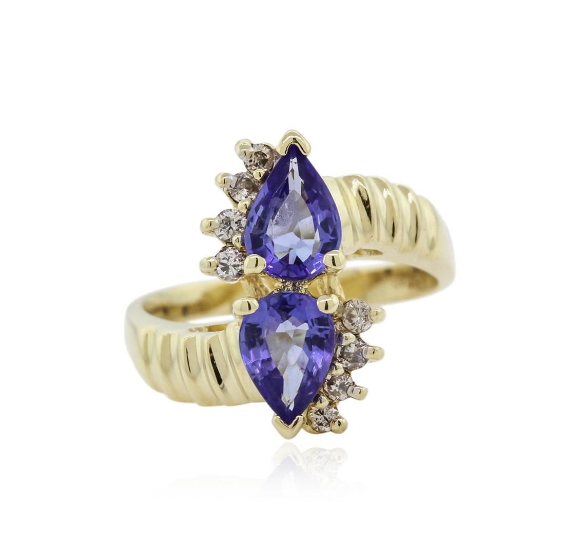 One ring featuring: 14KT yellow gold weighing 5.71 grams containing two tanzanites with a total weight of 2.00ct and diamonds with a total weight of 0.10ct.