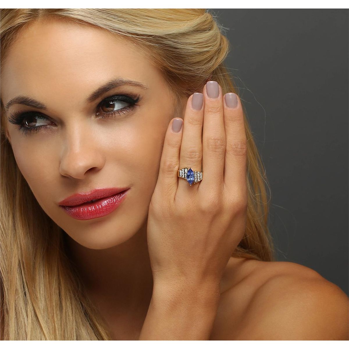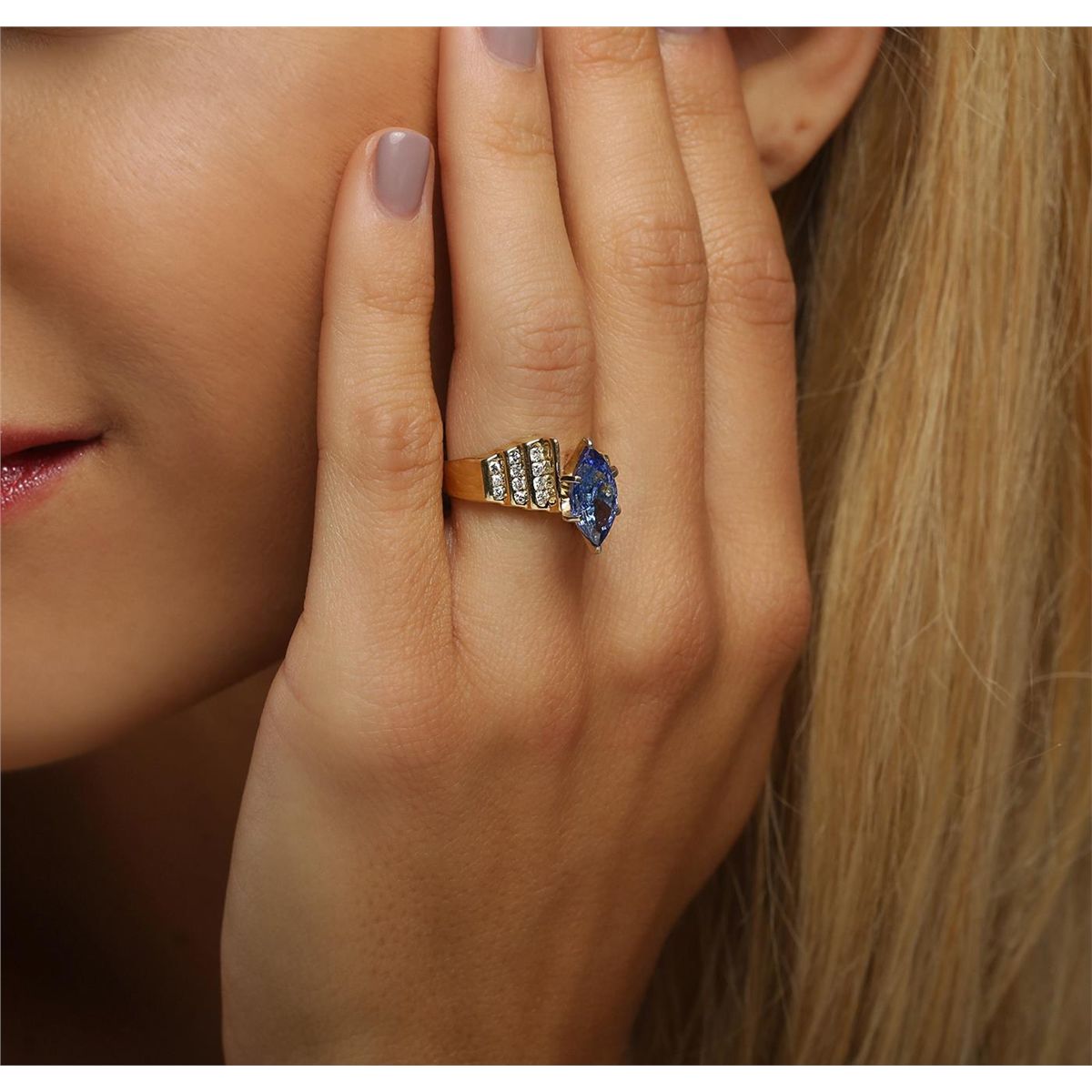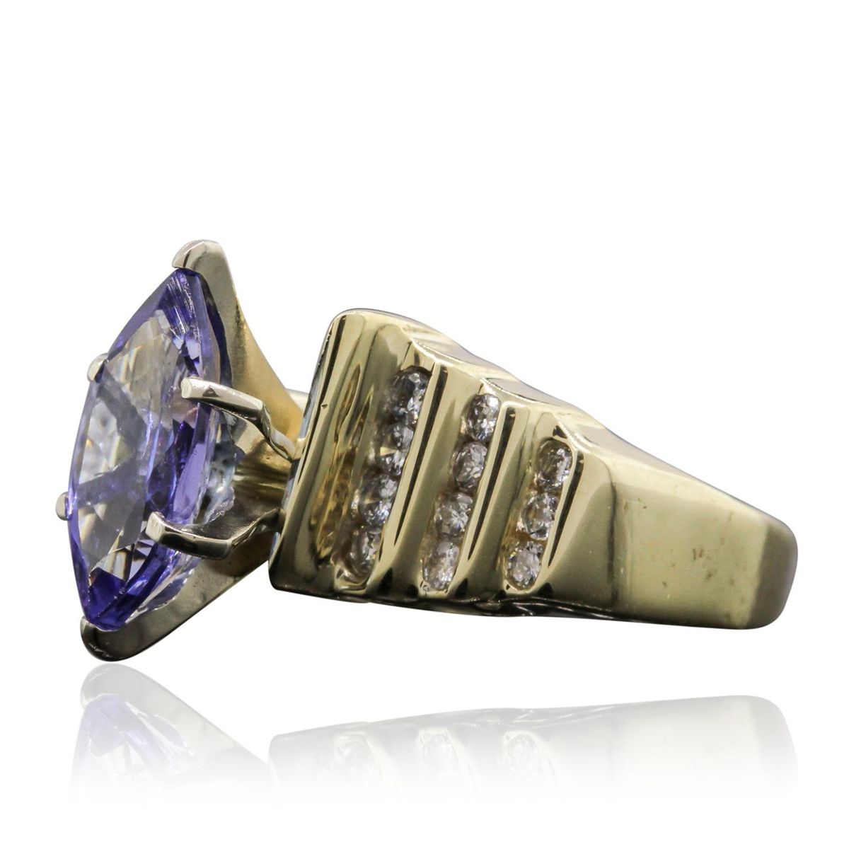 One ring featuring: 14KT Yellow Gold with a total weight of 5.80 grams, Tanzanite with a total weight of 2.00ct, and Diamonds with a total weight of 0.50ctw.