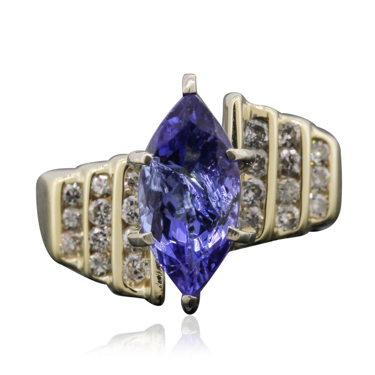 One ring featuring: 14KT Yellow Gold with a total weight of 5.80 grams, Tanzanite with a total weight of 2.00ct, and Diamonds with a total weight of 0.50ctw.