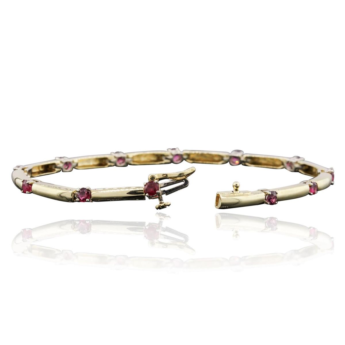 One bracelet featuring: 14KT Yellow Gold with a total weight of 10.50 grams, and rubies with a total weight of 2.00ctw.