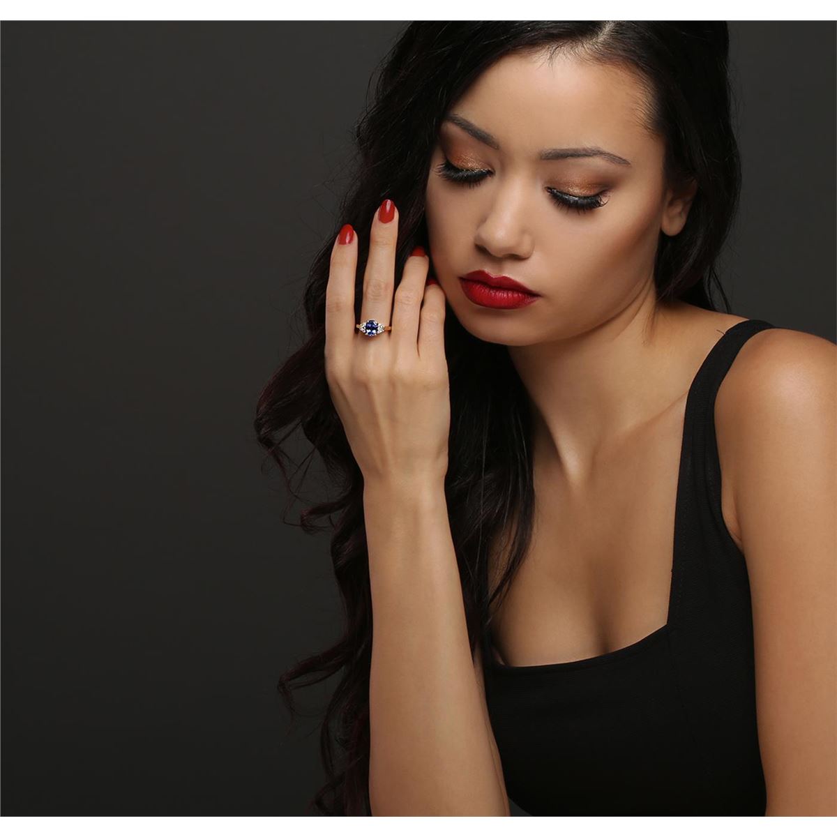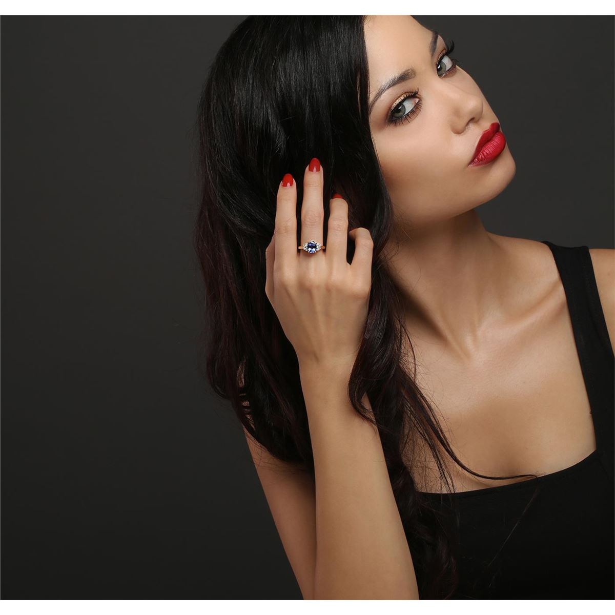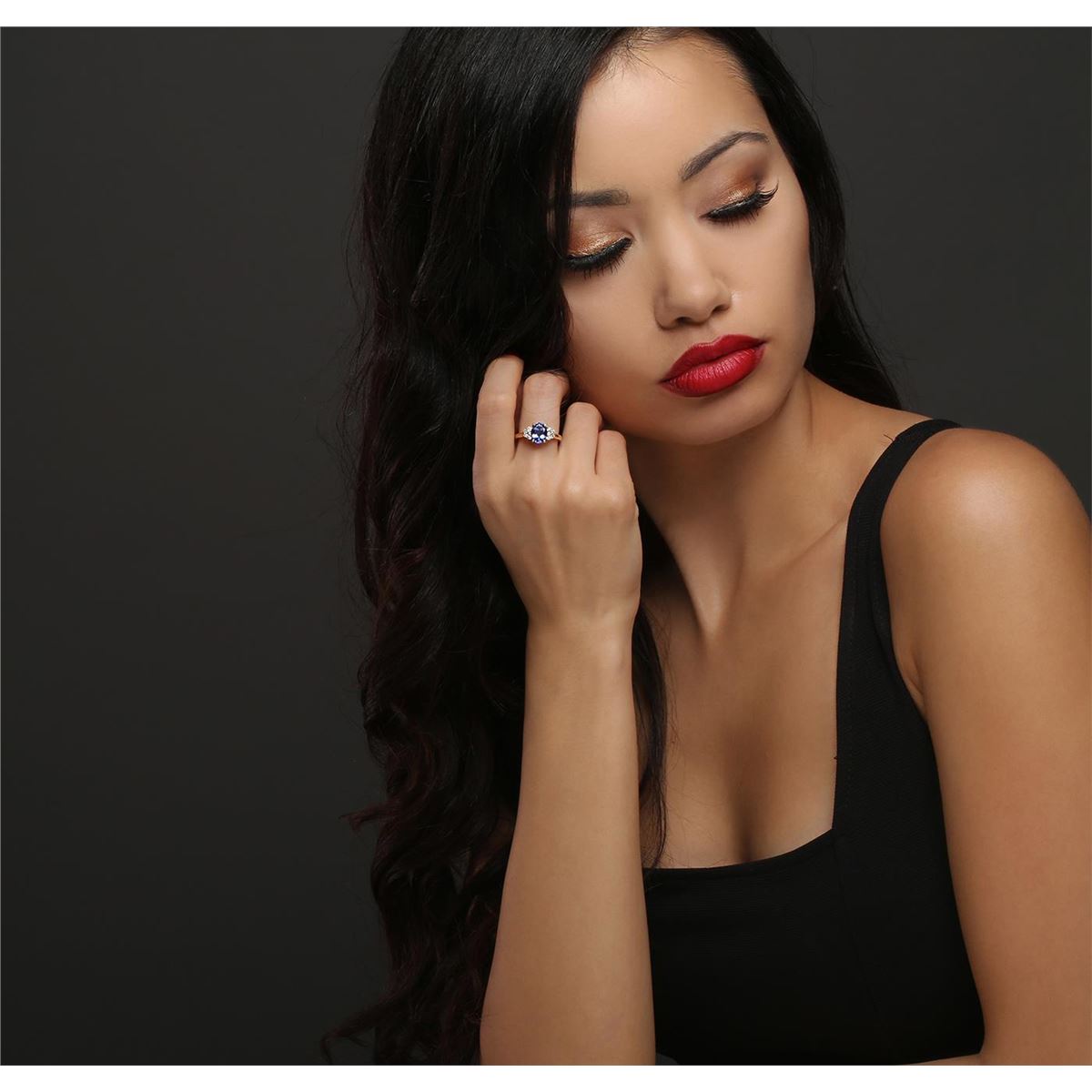 One electronically tested 14KT yellow gold ladies cast tanzanite and diamond ring with a bright polish finish. The featured tanzanite is supported by diamond set shoulders, completed by a one and one-half millimeter wide band. Trademark is Orianne. Identified with markings of "14K". Condition is new, good workmanship. Containing: One prong set oval brilliant cut natural tanzanite, measuring 9.20 x 7.00 x 4.50mm, 6% bulge factor, approximate weight of 2.10ct., clarity is eye clean, type I, medium dark, very slightly grayish, violetish blue color, (GIA vB 6/3), cut is good. Transmitting light with no distortion, transparent. Graded in the setting. Tanzanite is a very rare gemstone that is only found in the country of Tanzania. Originally discovered in 1967. Tiffany & Company, named the stone Tanzanite. It is found in the Usumburu Mountains that border the Umba Valley of northern Tanzania. Tanzanite occurs in gray, brown, violet, blue, reddish-purple, & green. The gem is interesting because of its exceptional pleochroism. Rotated in different directions a tanzanite will exhibit multiple changes of color. Tanzanite has a low tolerance to ultrasonic cleaning, and should not be cleaned using this method. Ten prong set round brilliant cut diamonds, measuring 1.90 - 1.80 x 1.11mm (depth est.) approximate total weight of 10 Stones = 0.33ct. Graded in the setting. Clarity: SI-1 to I-1. Color: H - J. Total Weight of Colored Stones 2.10ct. Total Weight of Diamonds 0.33ct. Total Weight of Ring 4.52 grams. AIG Appraised at $6,445.00.