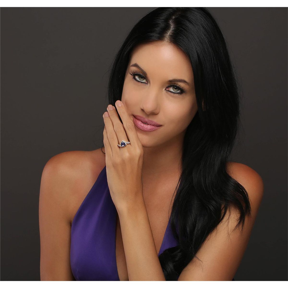 One electronically tested 14KT yellow gold ladies combination cast & assembled ring with a bright polish finish. Identified with markings of "14K". Condition is new. Containing: One prong set triangle modified brilliant cut natural tanzanite, measuring 9.00 x 9.00 x 4.33mm, approximate weight of 2.11ct., clarity is eye clean, type I, medium light, very slightly grayish, violet color, (GIA V 4/3), cut is good. Ninety-Five prong set round brilliant cut diamonds, measuring 1.20 - 1.20 x 0.72mm (depth est.) approximate total weight of 95 Stones = 0.60ct. Clarity: I-1 to I-2. Color: J - K, Cut is Good. Colored gemstones are presumed to have been subjected to commonly used enhancement processes. All diamonds and colored gemstones are graded in the mounting, unless otherwise stated. Total Weight of Colored Stones 2.11ct. Total Weight of Diamonds 0.60ct. Total Weight of Ring 3.80 grams. GGL Appraised at $4,990.00.