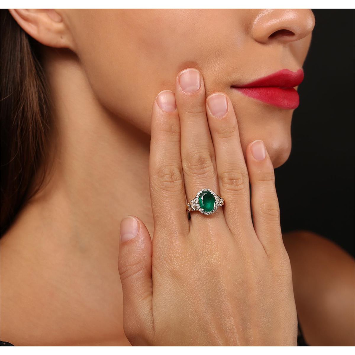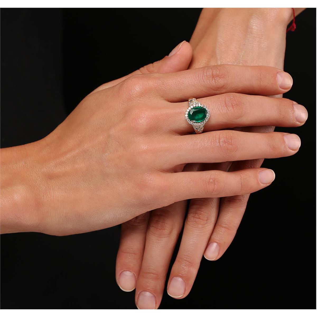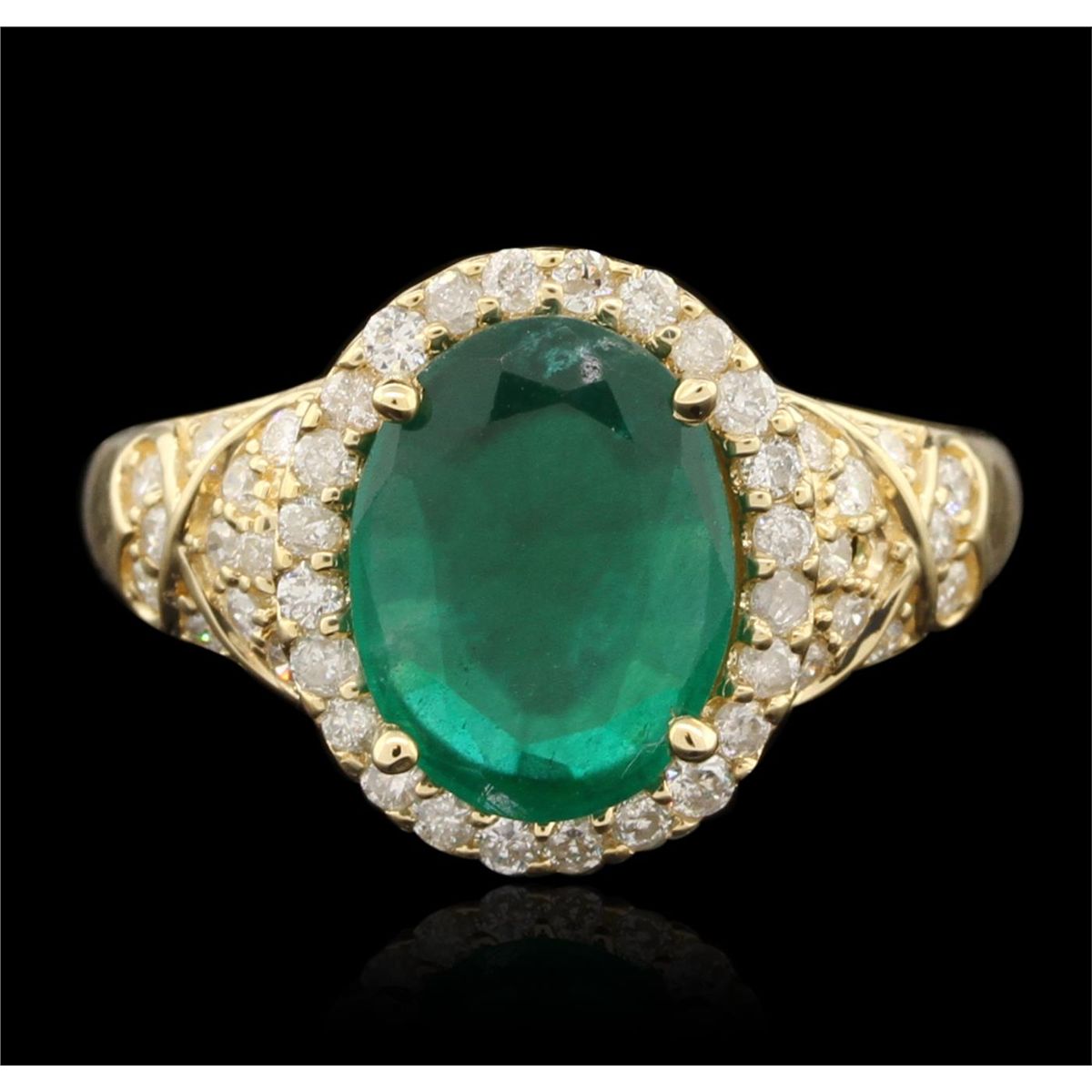 One electronically tested 14KT yellow gold Ladies combination cast & assembled cocktail ring with a bright polish finish. Trademark is Orianne. Identified with markings of "14K". Condition is excellent. Containing: One prong set oval modified brilliant cut natural emerald, measuring 11.00 x 8.20 x 3.40mm, approximate weight of 2.24ct., clarity is heavily included, type III, medium dark, moderately strong, green color, (GIA G 6/4), cut is good. Colored gemstones are presumed to have been subjected to commonly used and possible undetectable color/clarity enhancement processes. Thirty-Six prong set round brilliant cut diamonds, measuring 1.40 - 1.40 x 0.84mm (depth est.) approximate total weight of 36 Stones = 0.53ct. Clarity of I-1 to I-2, Color of J, Cut is Good. Total Weight of Colored Stones 2.24ct. Total Weight of Diamonds 0.53ct. Total Weight of Ring 4.40gm. GGL Appraised at $4,790.00.