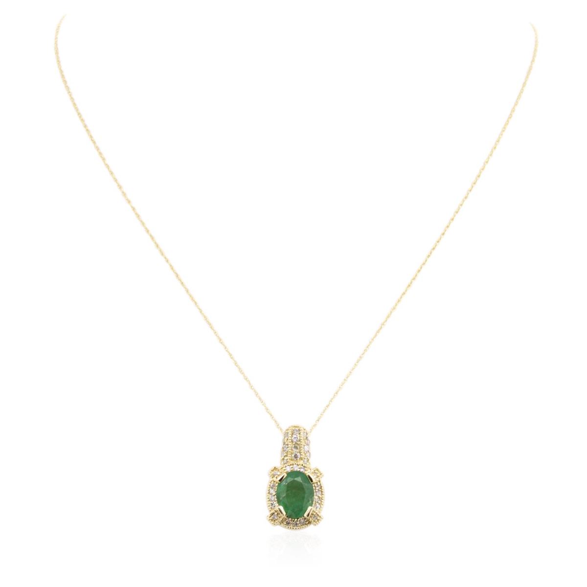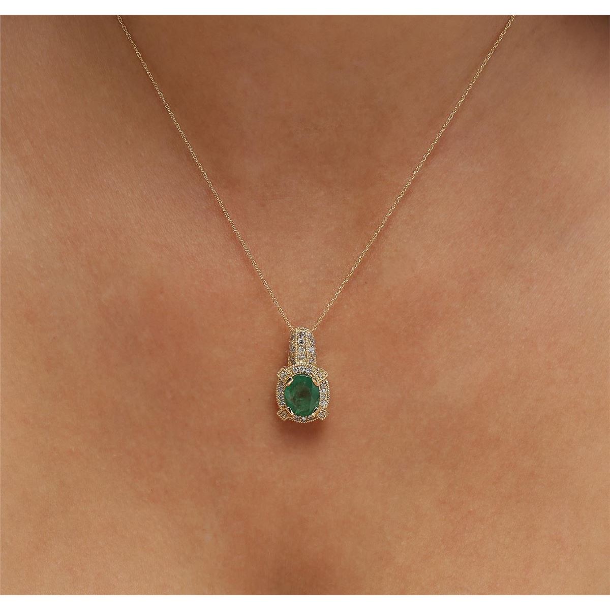 One pendant with chain featuring: 14KT yellow gold weighing 4.35 grams containing one emerald with a total weight of 2.28ct and round diamonds with a total weight of 0.46cts.