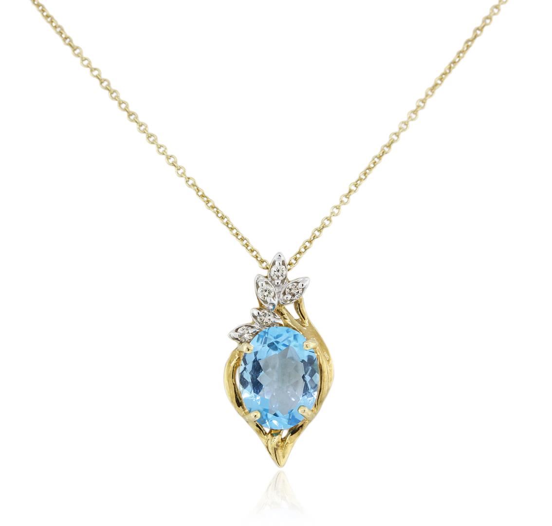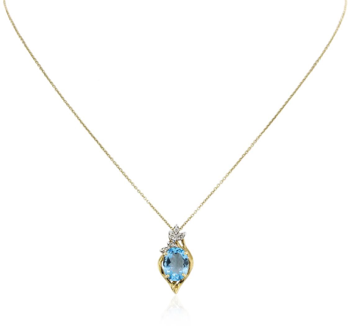 One pendant with chain featuring: 14KT yellow gold weighing 1.90 grams containing one blue topaz center stone with a total weight of 2.48ct and diamonds with a total weight of 0.10ct.