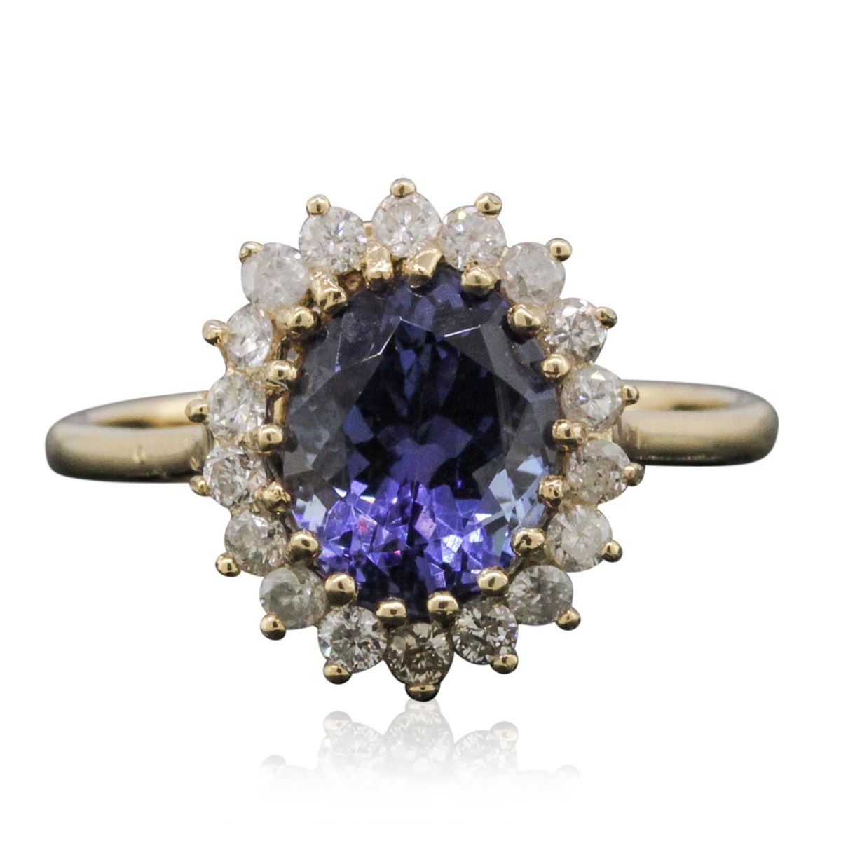 One electronically tested 14KT yellow gold ladies cast tanzanite and diamond ring. The featured tanzanite is set within a diamond bezel, completed by a two millimeter wide band. Trademark is Orianne. Identified with markings of "14K". Condition is new, good workmanship. Containing: One prong set oval brilliant cut natural tanzanite, measuring 9.20 x 7.20 x 5.60mm, 6% bulge factor, approximate weight of 2.67ct., clarity is eye clean, type I, medium dark, very slightly grayish, bluish violet color, (GIA bV 6/3), cut is good. Transmitting light with no distortion, transparent. Graded in the setting. Tanzanite is a very rare gemstone that is only found in the country of Tanzania. Originally discovered in 1967. Tiffany & Company, named the stone Tanzanite. It is found in the Usumburu Mountains that border the Umba Valley of northern Tanzania. Tanzanite occurs in gray, brown, violet, blue, reddish-purple, & green. The gem is interesting because of its exceptional pleochroism. Rotated in different directions a tanzanite will exhibit multiple changes of color. Tanzanite has a low tolerance to ultrasonic cleaning, and should not be cleaned using this method. Eighteen prong set round brilliant cut diamonds, measuring 1.90 - 1.80 x 1.11mm (depth est.) approximate total weight of 18 Stones = 0.51ct. Graded in the setting. Clarity: I-1 to I-2. Color: G - I. Total Weight of Colored Stones 2.67ct. Total Weight of Diamonds 0.51ct. Total Weight of Ring 3.26 grams. AIG Appraised at $7,630.00.