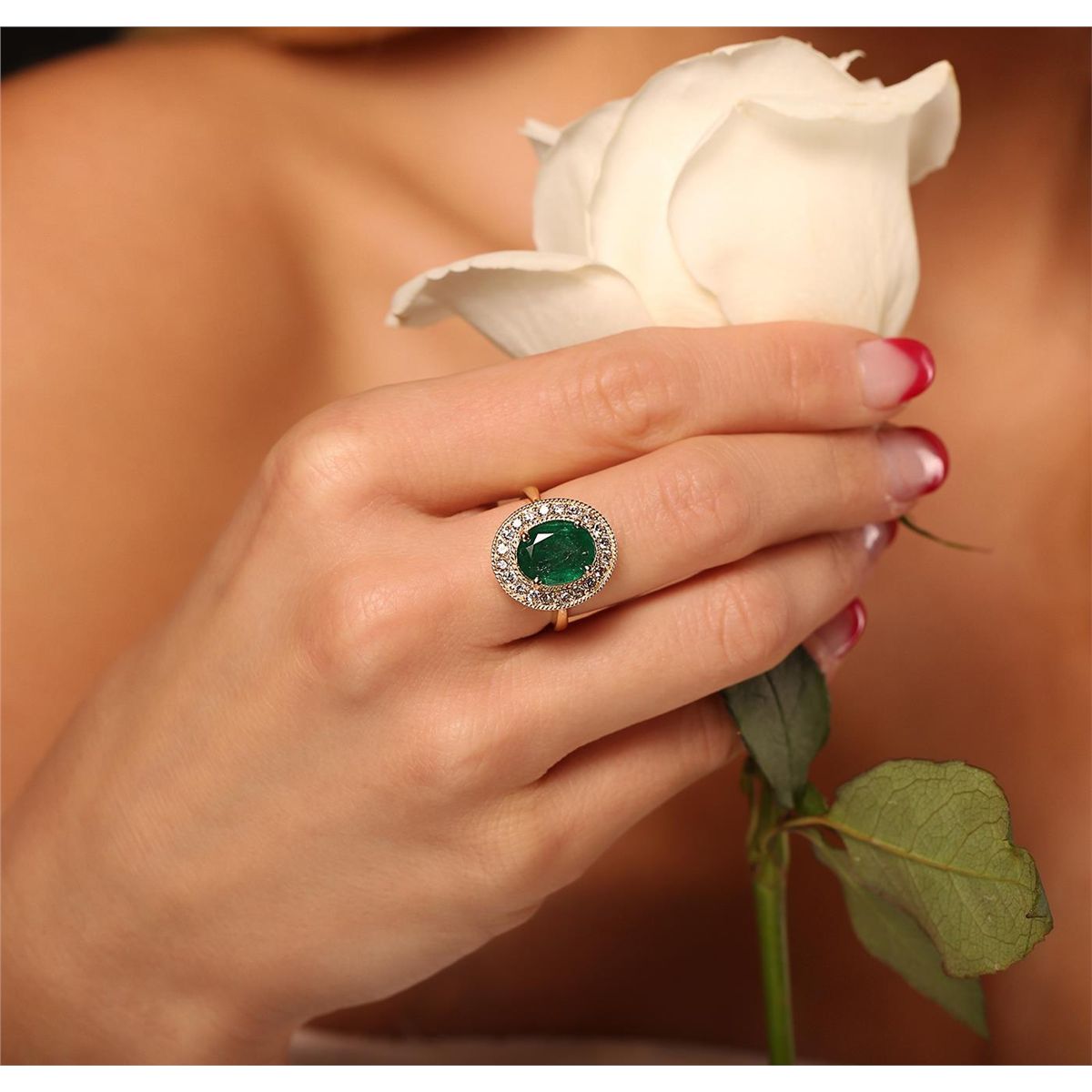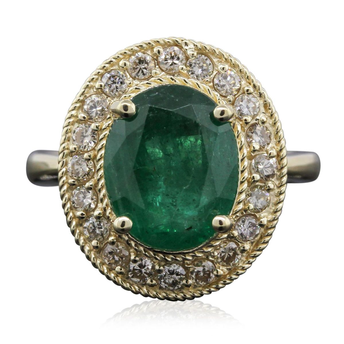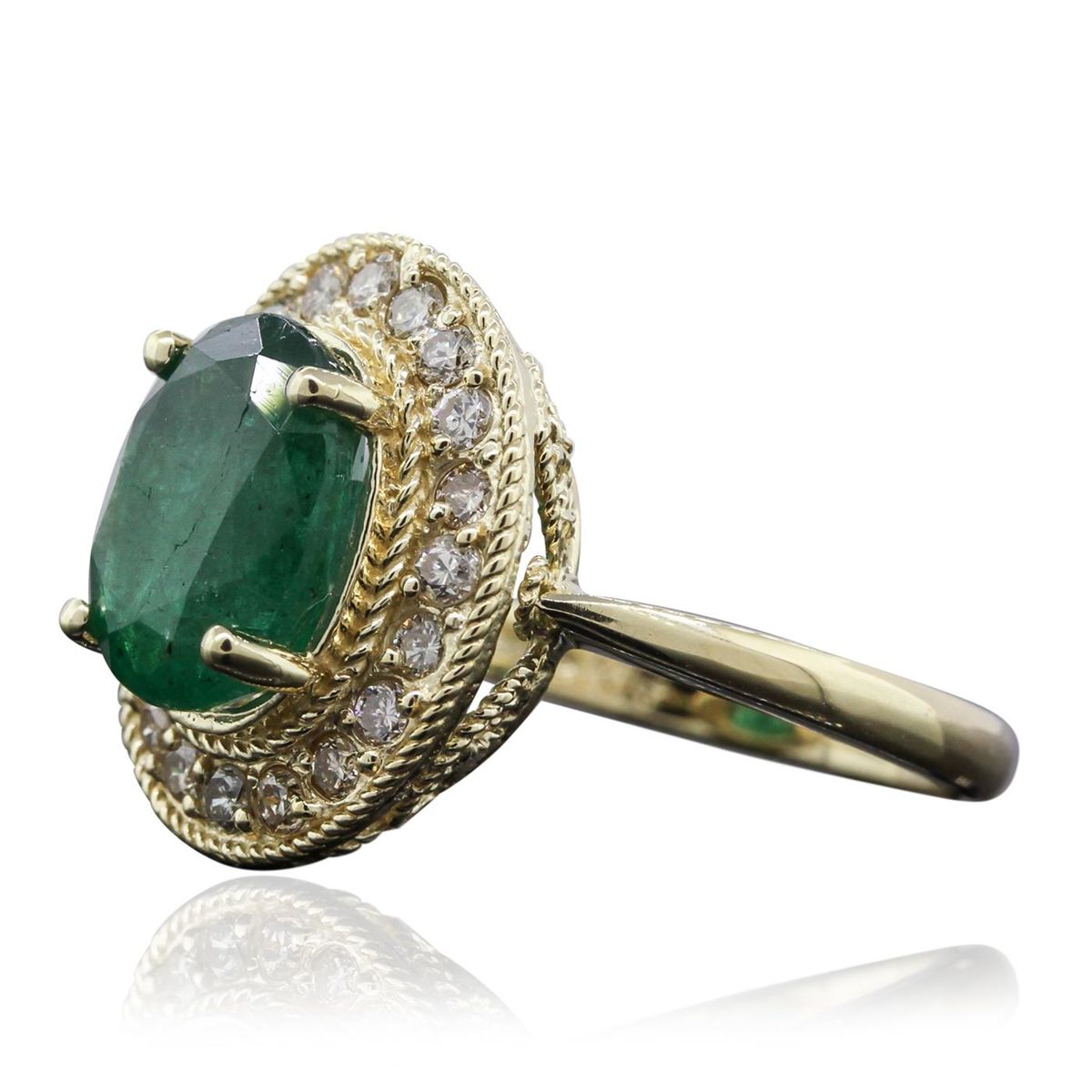 Great Condition! One electronically tested 14KT yellow gold Ladies combination cast & assembled fashion ring with a bright polish finish. Condition is new. Identified with markings of "14K". Containing: One prong set oval modified mixed cut natural emerald, measuring 10.50 x 8.50 x 5.60mm, approximate weight of 2.75ct., clarity is heavily included, type III, medium, very slightly grayish, green color, (GIA G 5/3), cut is good. Colored gemstones are presumed to have been subjected to commonly used and possible undetectable color/clarity enhancement processes. Twenty bead set round brilliant cut diamonds, measuring 1.80 - 1.80 x 1.08mm (depth est.) approximate total weight of 20 Stones = 0.45ct. Clarity of SI-2 to I-2, Color of J - K, Cut is Good. Total Weight of Colored Stones 2.75ct. Total Weight of Diamonds 0.45ct. Total Weight of Ring 5.40 grams. GGL Appraised at $8,065.00.