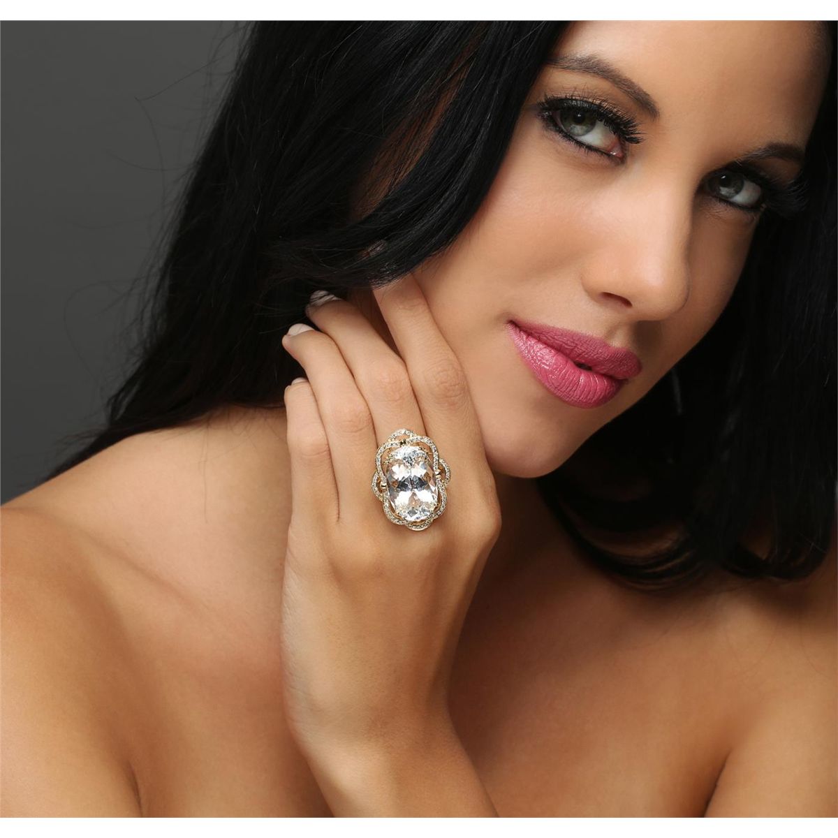 One electronically tested 14KT yellow gold Ladies combination cast & assembled ring with a bright polish finish. Condition is new. Identified with markings of "K14". Containing: One prong set oval modified brilliant cut natural aquamarine, measuring 23.24 x 15.17 x 11.00mm, approximate weight of 22.07ct., clarity is eye clean, type I, very light, very slightly grayish, blue color, (GIA B 2/3), cut is good. Seventy-Two prong set round brilliant cut diamonds, measuring 1.30 - 1.30 x 0.78mm (depth est.) approximate. Total Weight of 72 Stones = 0.58ct. Clarity: SI-2 to I-2. Color: J - K, Cut is Good. Colored gemstones are presumed to have been subjected to commonly used enhancement processes. All diamonds and colored gemstones are graded in the mounting, unless otherwise stated. Total Weight of Colored Stones 22.07ct. Total Weight of Diamonds 0.58ct. Total Weight of Ring 13.40 grams. GGL Appraised at $9,540.00.