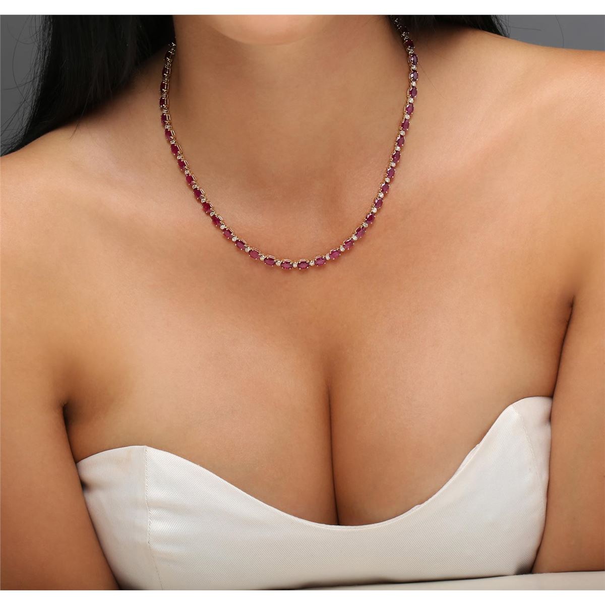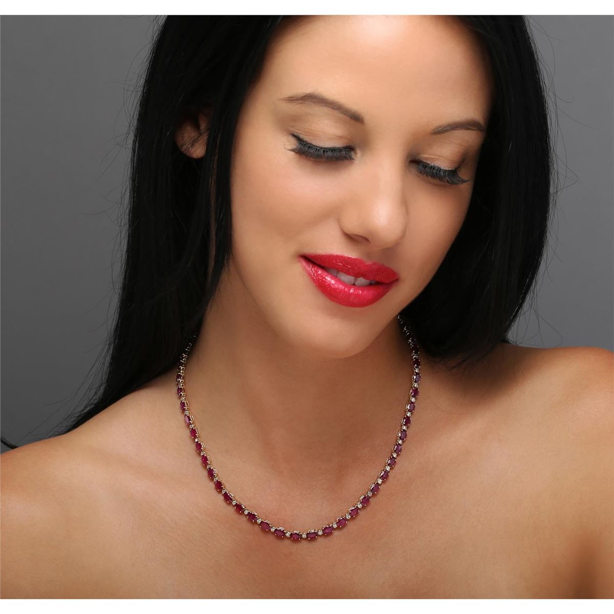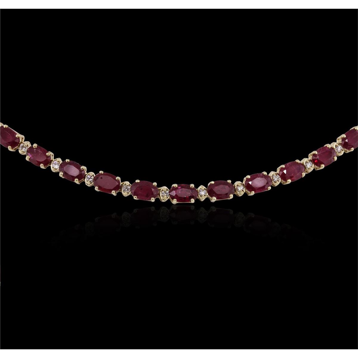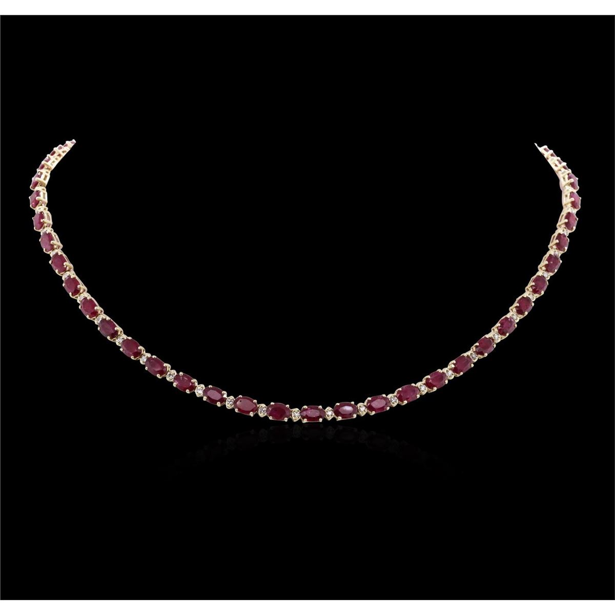 One necklace featuring: 14KT yellow gold weighing 15.00 grams containing 52 rubies with a total weight of 26.95cts and round cut diamonds with a total weight of 1.25cts.