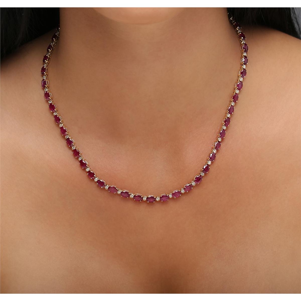 One necklace featuring: 14KT yellow gold weighing 15.00 grams containing 52 rubies with a total weight of 26.95cts and round cut diamonds with a total weight of 1.25cts.