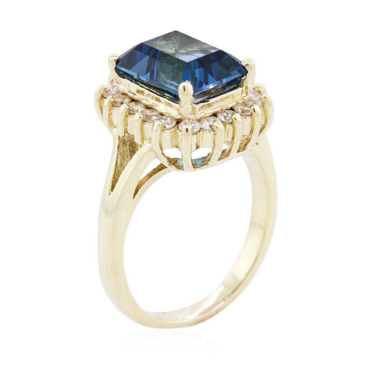 One ring featuring: 14KT yellow gold weighing 6.50 grams containing one blue topaz center stone with a total weight of 3.00ct and round cut diamonds with a total weight of 0.25cts.